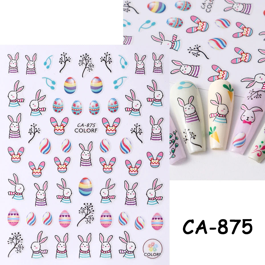 3D Bunny Nail Art Sticker Decals Decorations Easter Egg Design Cute Cartoon Rabbit Flower Nail Stickers Sliders for Manicure