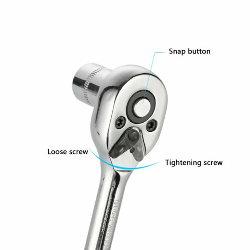 3. Rapid fall off ratchet wrench (positive and negative adjustable), The push button quick release feature ensures taht the socket is locked securely while in use, but also allows for easy removal or quick change of socket evev with greasy or oily finger. and our high quality 45 teeth ratchet can improve the operation speed. Is open throttle, in air conditioning, seat nut, tire fenders, car door locks, home (basic contains) usually used in the suit small screw nut the ideal of a set of tools.