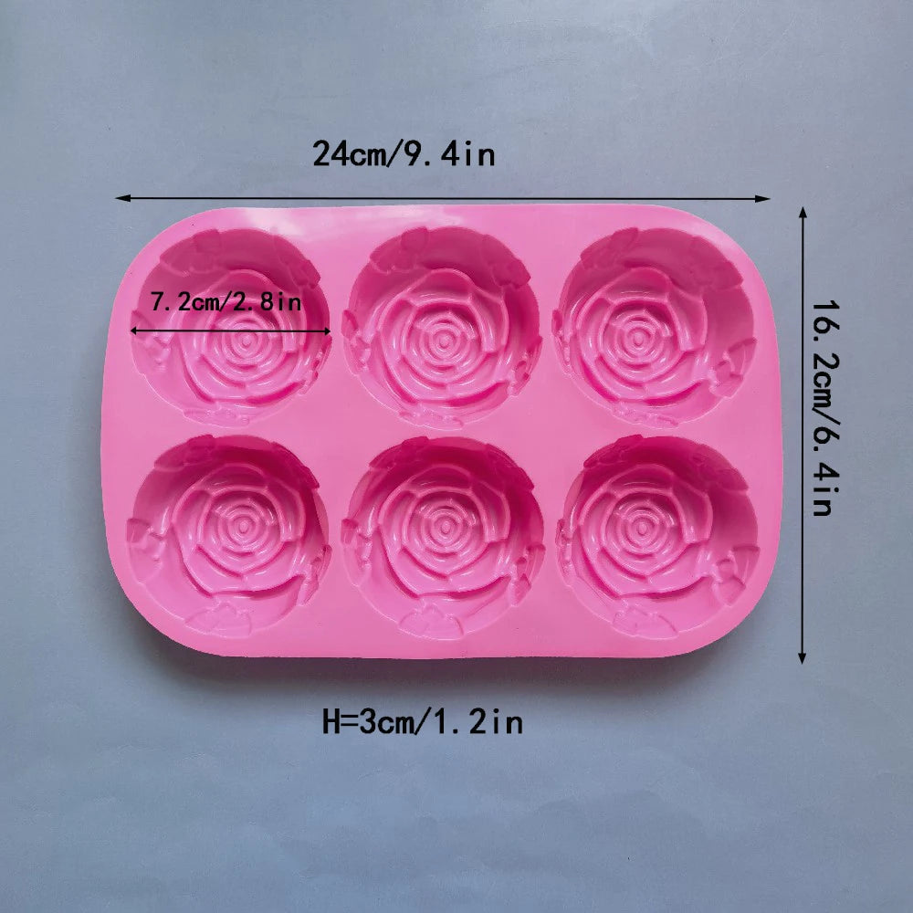 6 Holes Flower Rose Handmade Soap Candle Mold Silicone Cake Mold Bakeware Baking Dish Pan Muffin Mould Rose Ice Cube