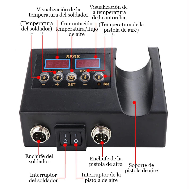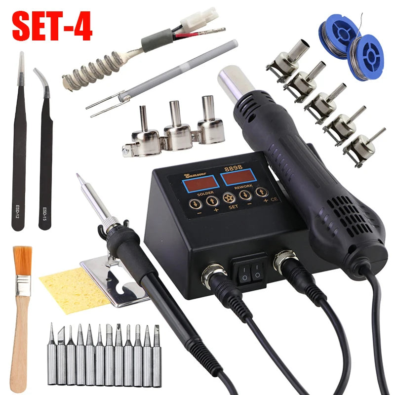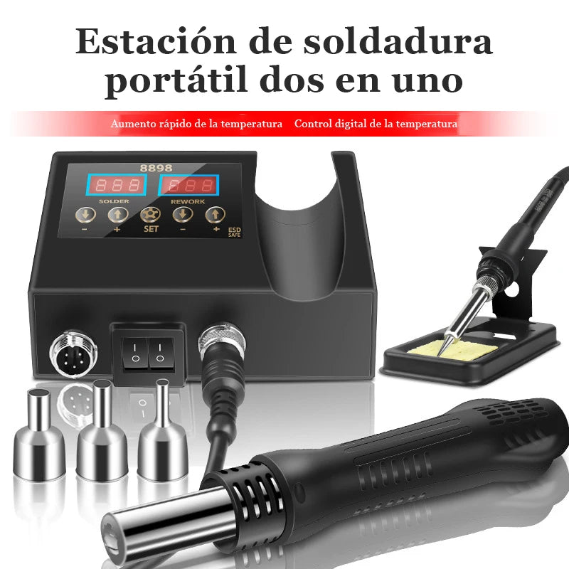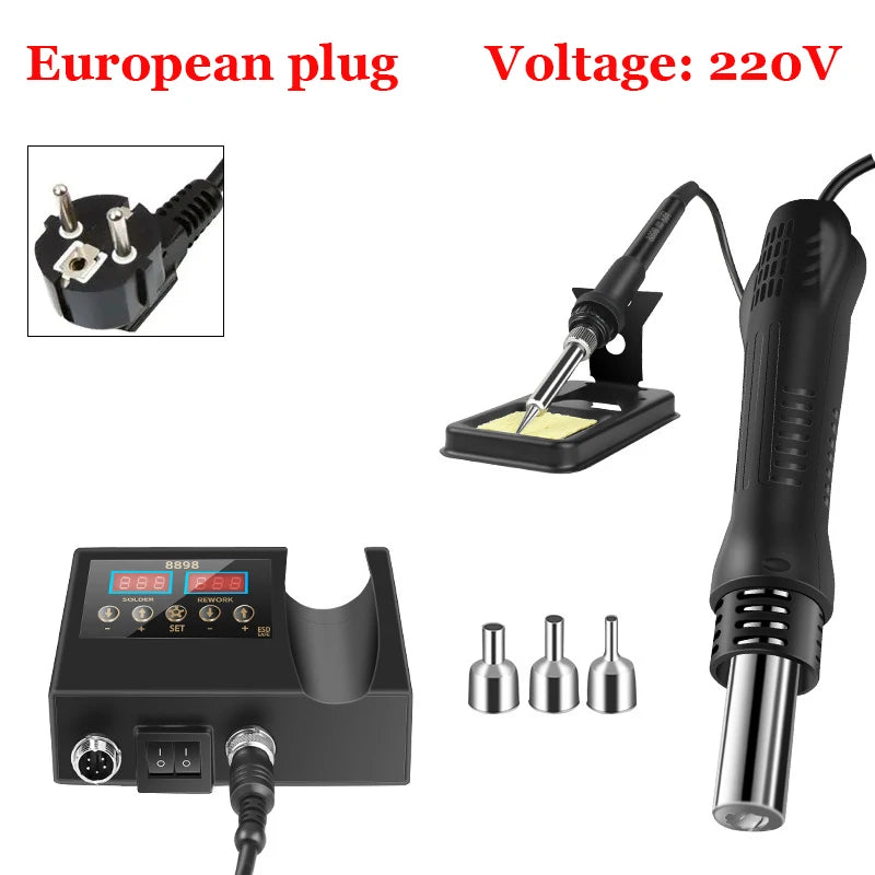 8898 Heat Gun, Electric Soldering Iron with Dual Digital Display, 2-in-1 Soldering Station, Soldering Maintenance Tool, EU Plug-