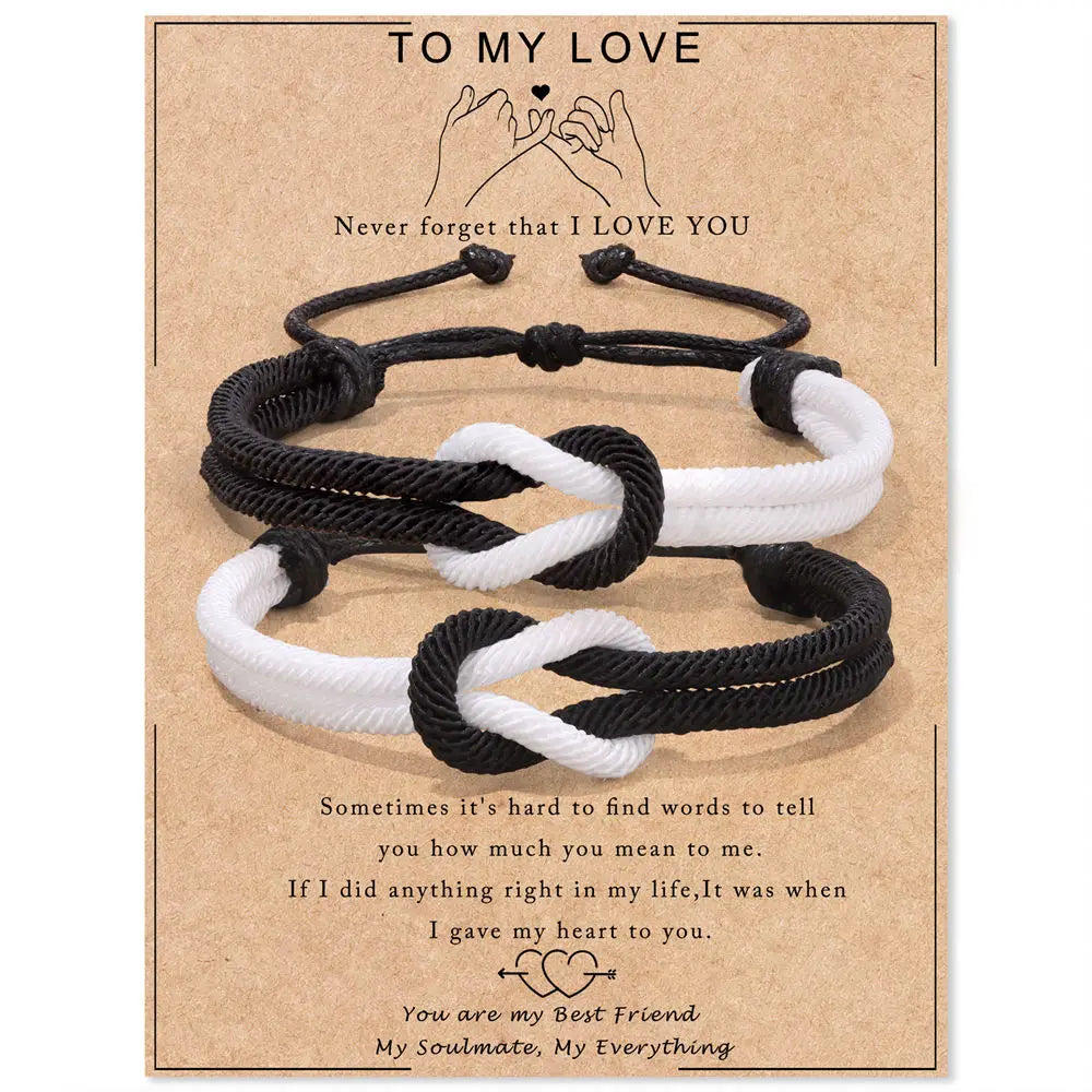 Couple Concentric Knot Rope Bracelets For Women Men White Black Rope Braided Bracelet To My Love Anniversary Valentines Day Gift