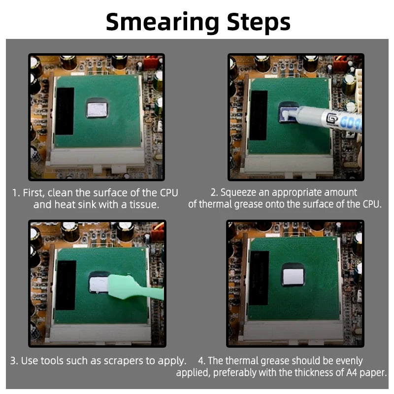 2. Using scraper or other tools to smear the thermal paste onto the CPU, and it is no need to smear on heat sink.