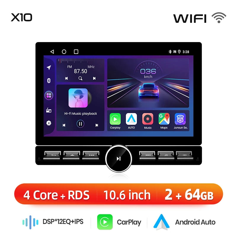 >>The Junsun radio supports Wireless CarPlay and Android Auto, allowing you to use smartphone functions and applications such as navigation, music, calls, and messaging during your journey. It provides a high-quality audio experience, enhancing the entertainment and convenience of your driving experience.