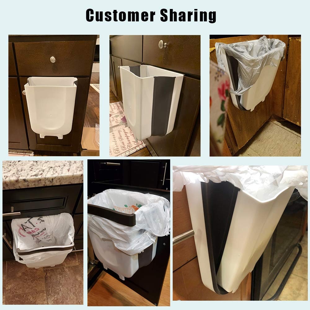 LMETJMA 9L Folding Waste Bin Kitchen Hanging Trash Can Cabinet Door Hanging Trash Garbage Bin For Bedroom Bathroom KC0309