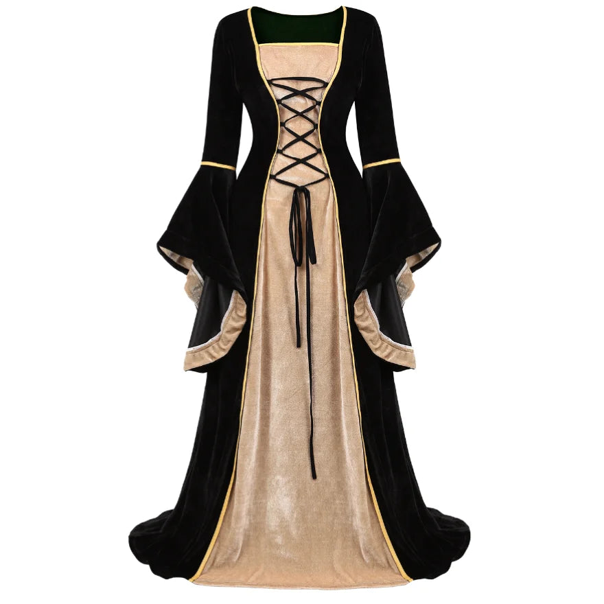 Medieval Renaissance Velvet Long Dress Women Victorian Retro Fancy Gown Halloween Cosplay Costume Plus Size