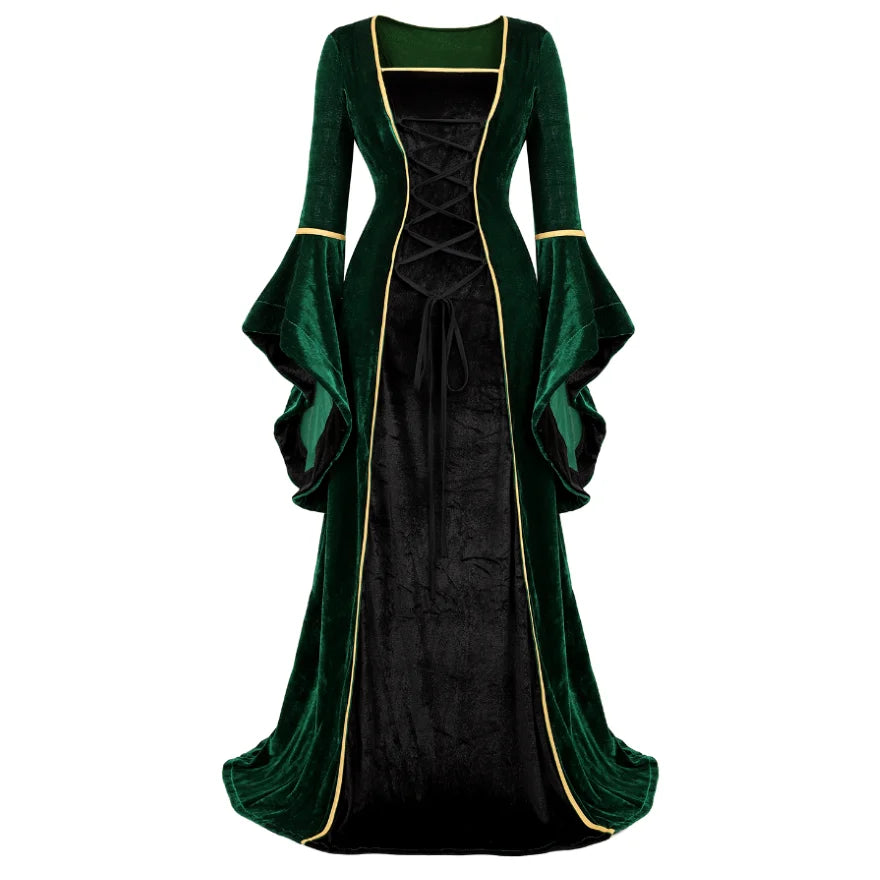 Women Renaissance Irish Deluxe Velvet Dress Victorian Medieval Long Dress Retro Fancy Gown Halloween Cosplay Costume Plus Size