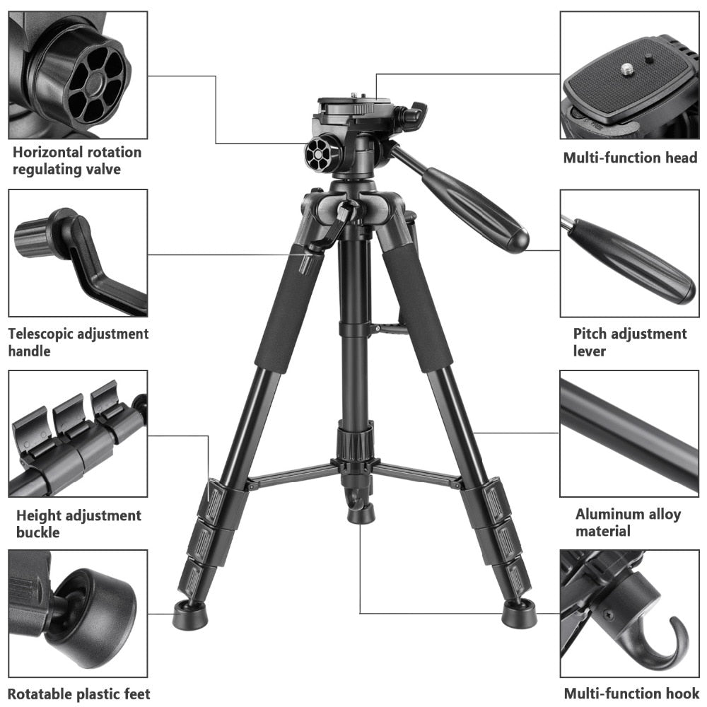 Neewer Camera Tripod Portable 56 inches/142cm Aluminum 3-Way Swivel Pan Head+Carrying Bag for Canon Nikon Sony DSLR Camera