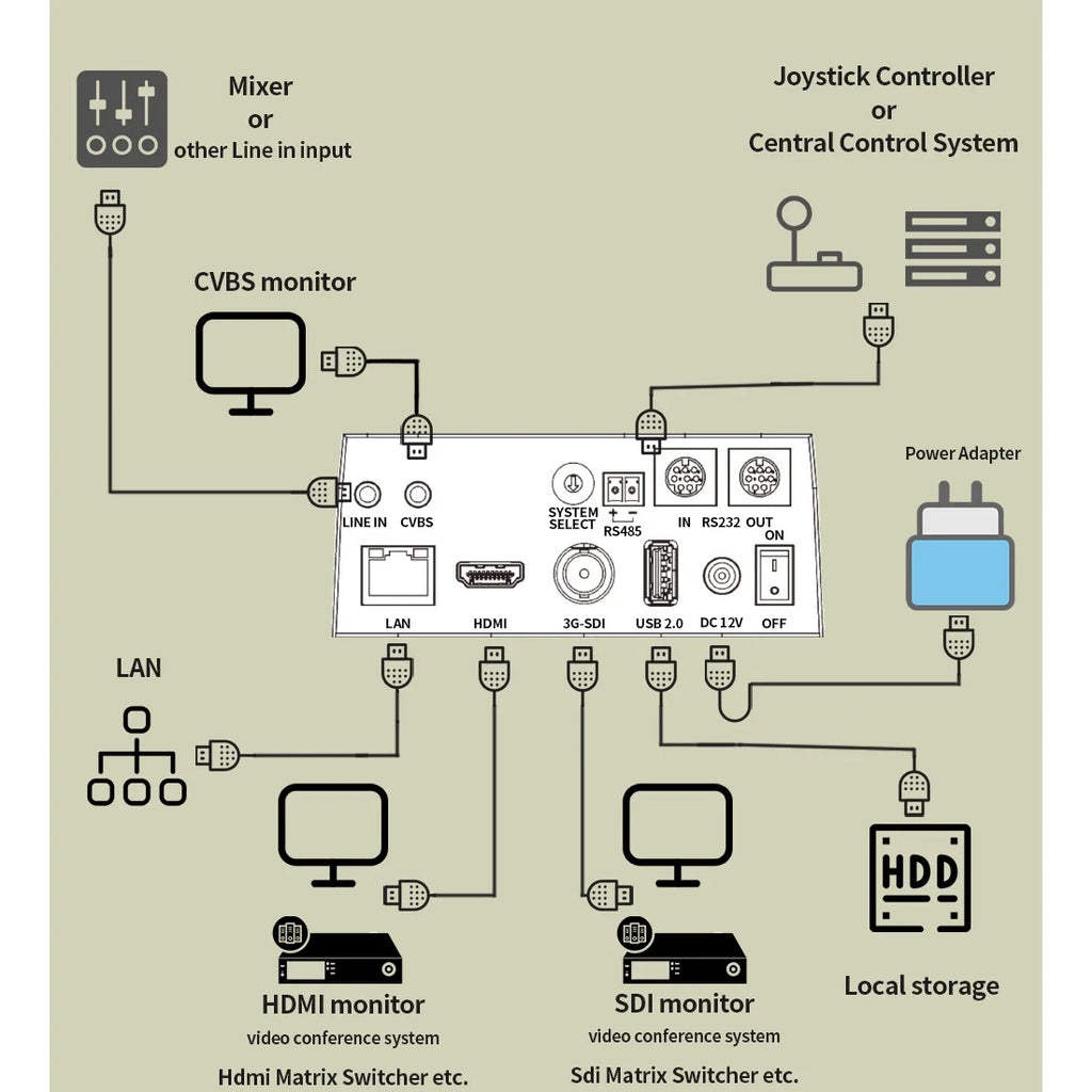 Video Output Interface: 3G-SDI, HDMI, CVBS, IP(RJ45)