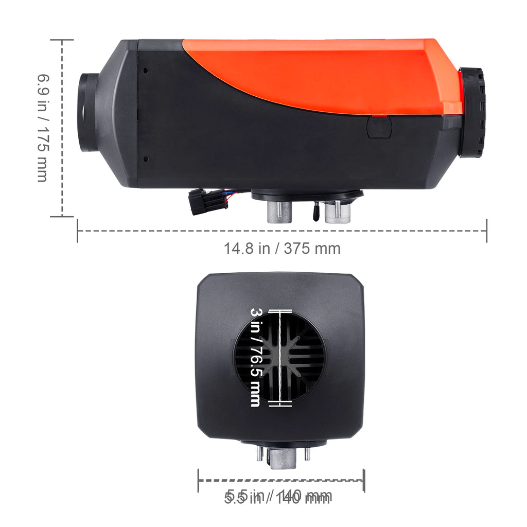 Efficient Heating: Heater Power: 8 KW; Rated Voltage: 12V. Applicable Range: 215-269 ft²/20-25 m². Our diesel air heater adopts a sandblasting aluminum heat exchanger for rapid heat production and transfer, ensuring a comfortable temperature inside your vehicle, boat, or cabin within 10 minutes.