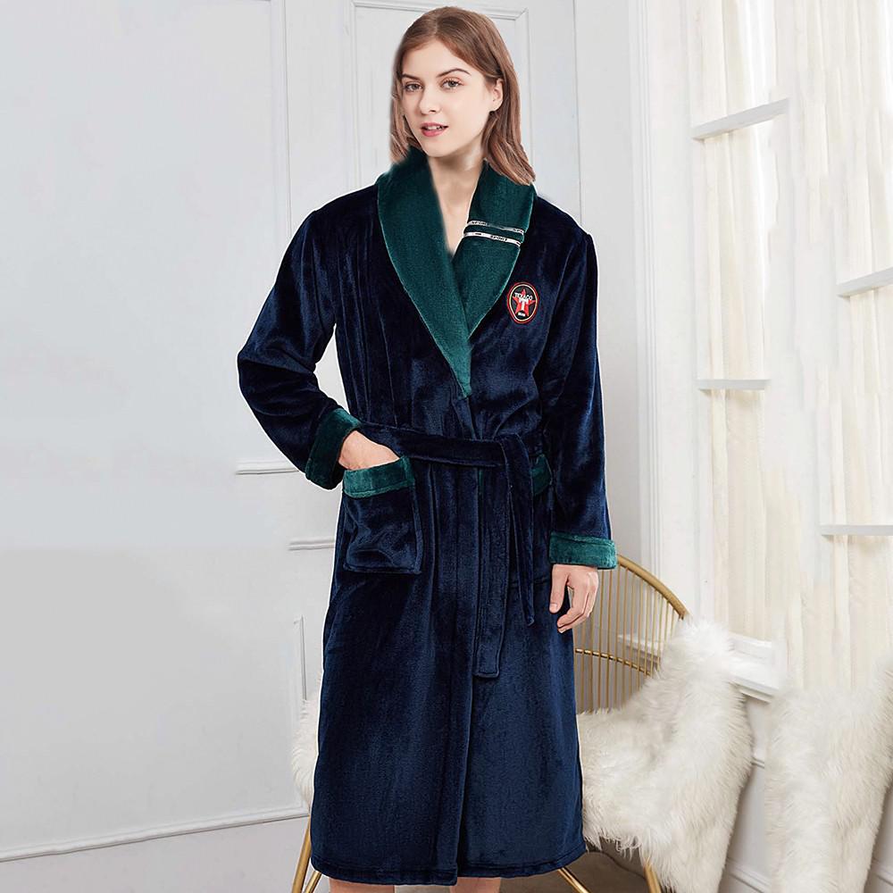 Winter Warm Couple Flannel Robe Sleepwear Loose Casual Kimono Bathrobe Gown Thick Coral Fleece Women Nightwear Nightgown 3XL