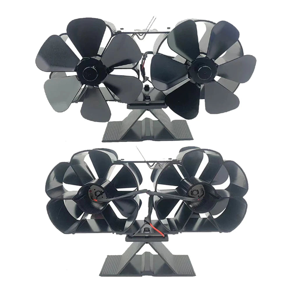 Wood Stove Fan Heat Powered Dual Silent Motors 4 Blades Non-Electric Heat Activated Fireplace Fan with Bracket and Thermometer