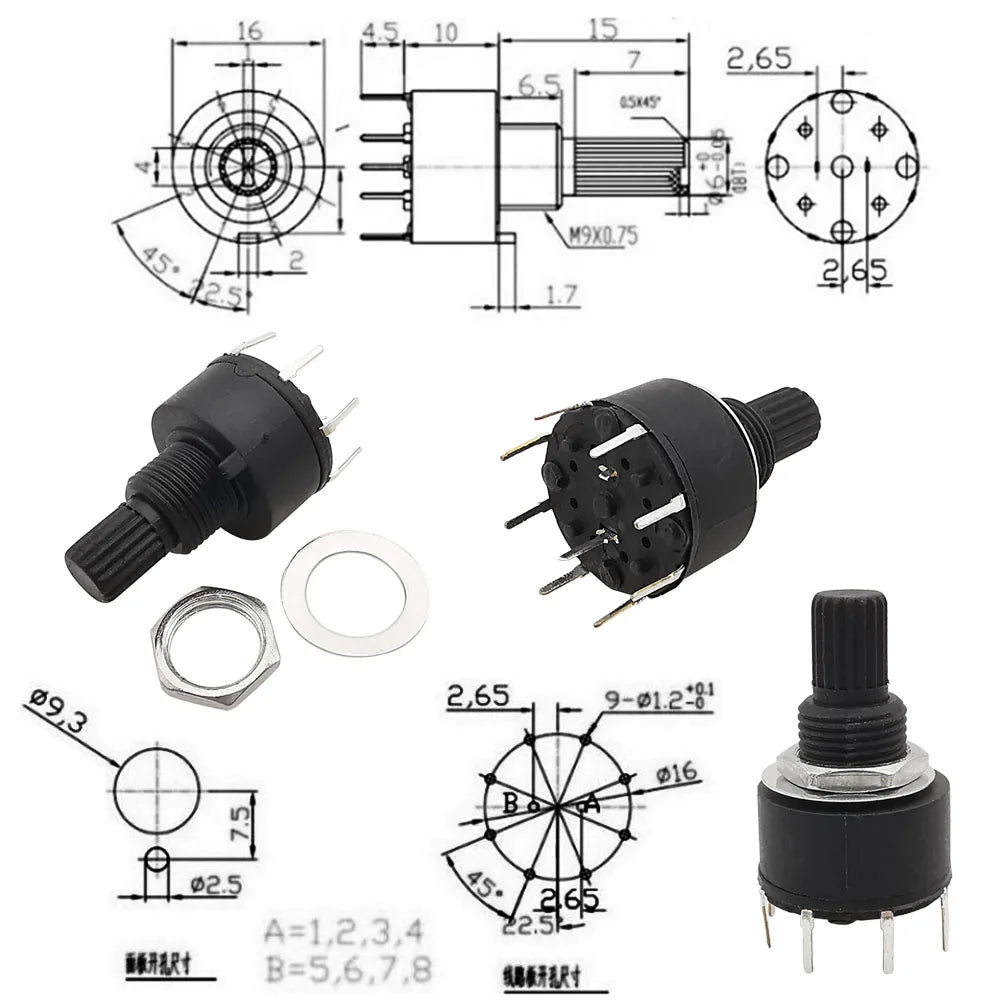 5Pcs/Lot SR16 16mm Rotary Band Switch 1Pole 5/6/8 Position 2Pole 3/4 Position Handle Length 15MM Shaft Flower Axis Band Switches