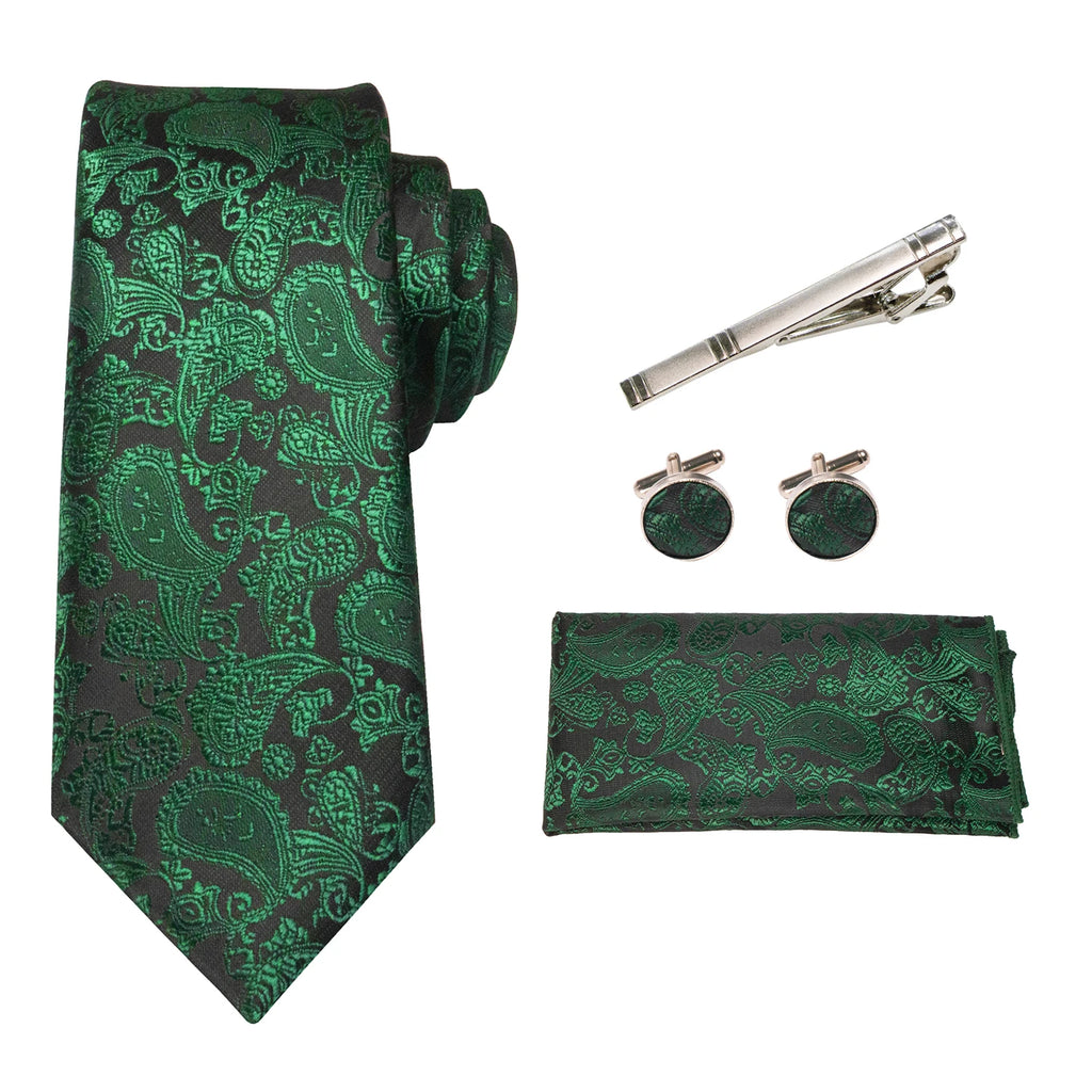 Blue Green Paisley Neck Ties For Men Luxury 8cm Wide Silk Wed Tie Pocket Square Cufflinks Tie clips Set Christmas Gifts For Men