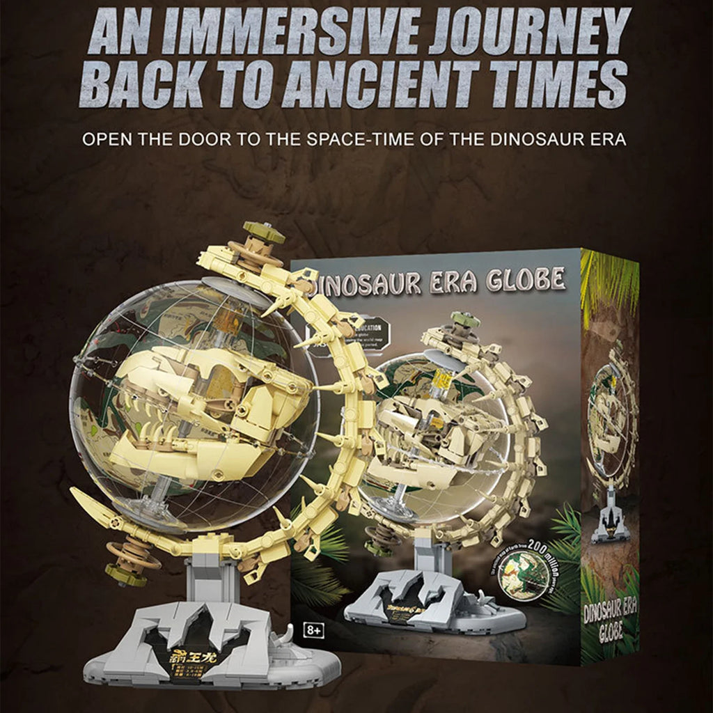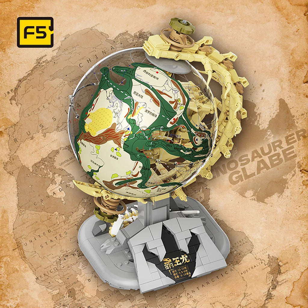 F5-I0003 Dinosaur Era Globe with Lighting Building Blocks Jurassic Tyrannosaurus Rex Skull Model STEM Toys for Kid Birthday Gift