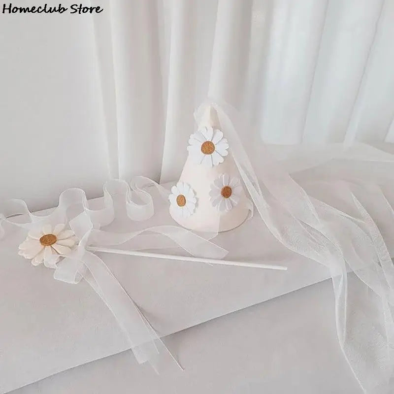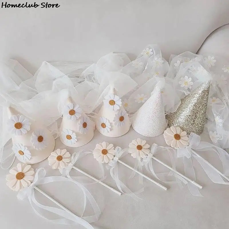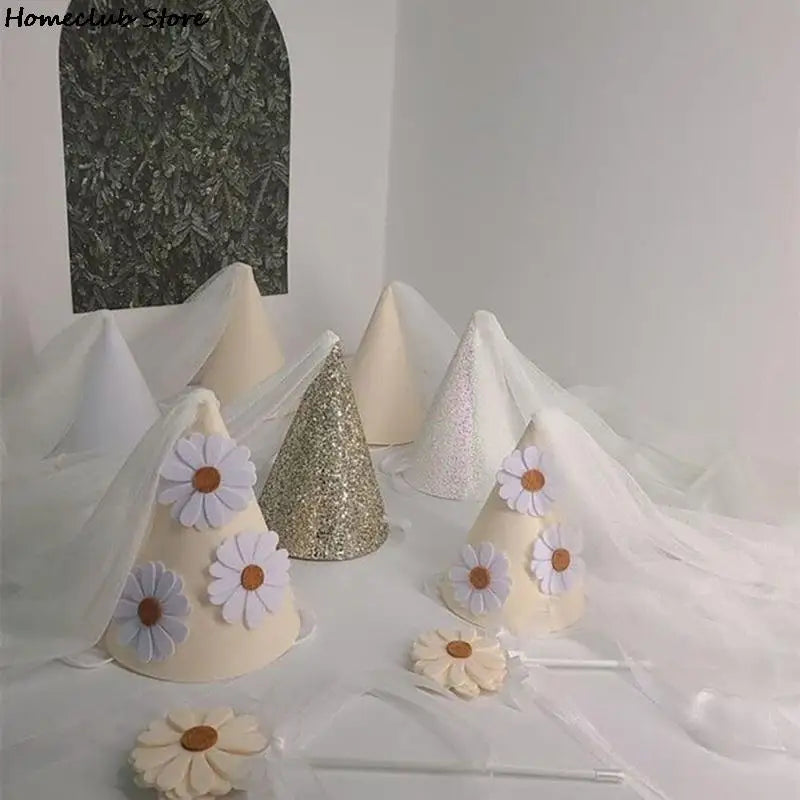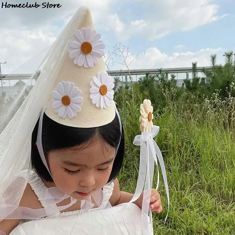 First Kids Birthday Daisy Felt Hat Three-dimensional Daisy Felt Hat Birthday Daisy Hat Baby Girl Flower Party Hat Mesh Headwear