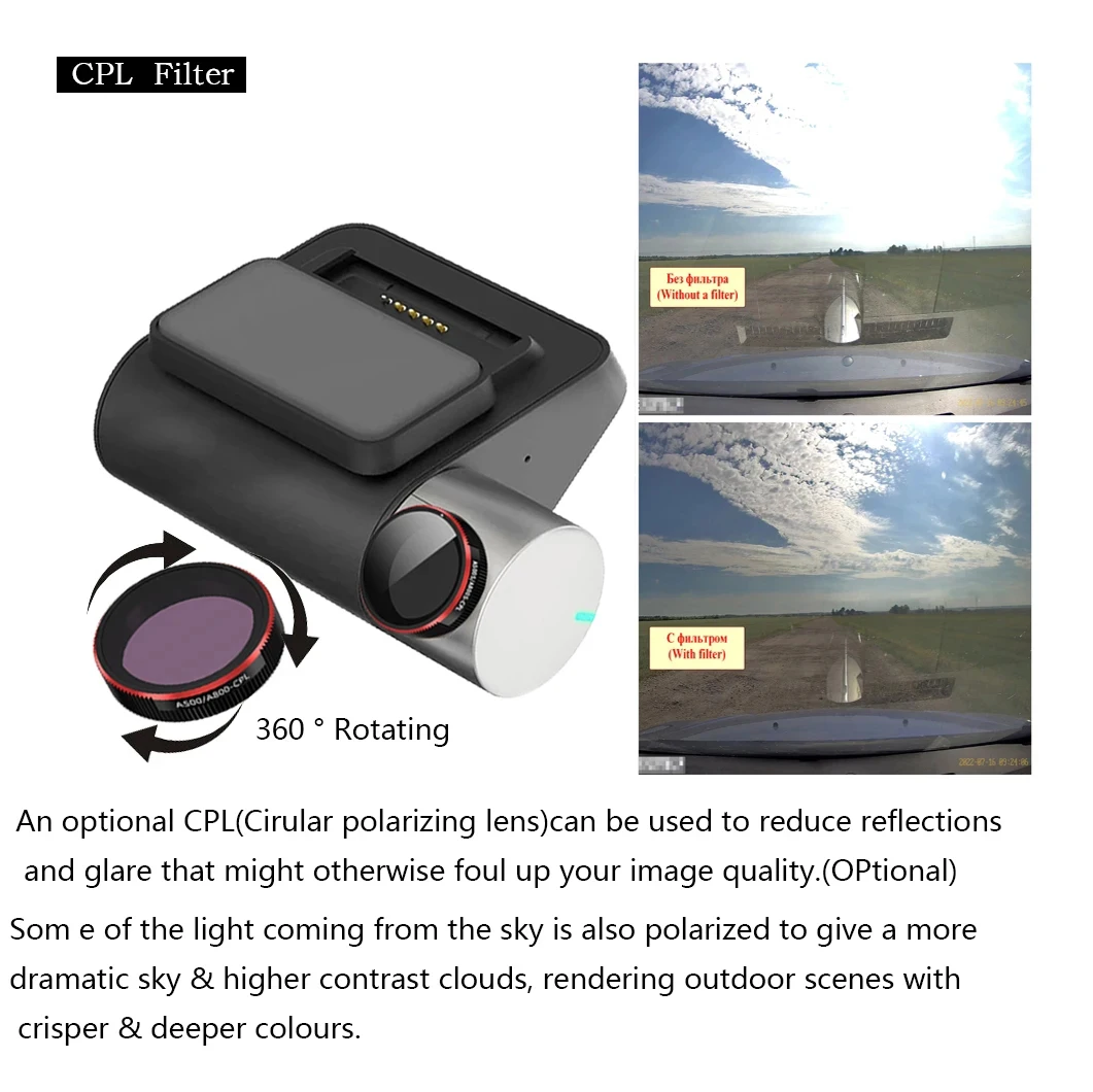for 70mai Dash Cam A510 CPL Filter for 70mai Rear Cam RC11 CPL Filter