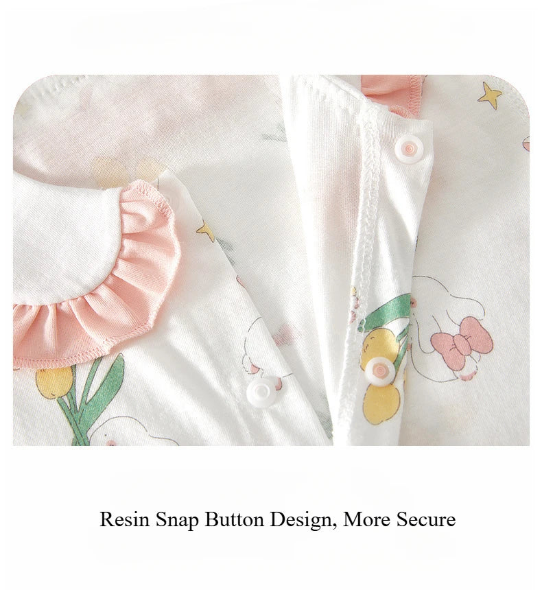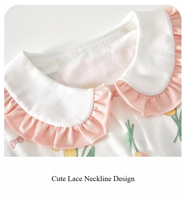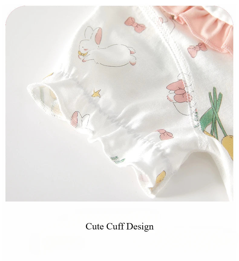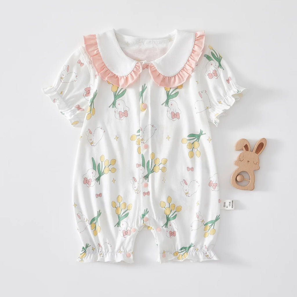 Girl's Summer Short Sleeve Romper Clothing Pure Cotton Infant Cute Lapel Printed Jumpsuit 1-3-6-9M Babe Pajamas