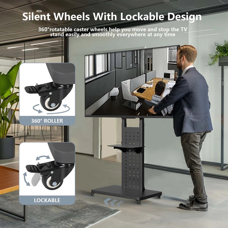 Heavy Duty Mobile TV Floor Stand Trolley with Wheels and Storage Shelf Support Rotate Vertically