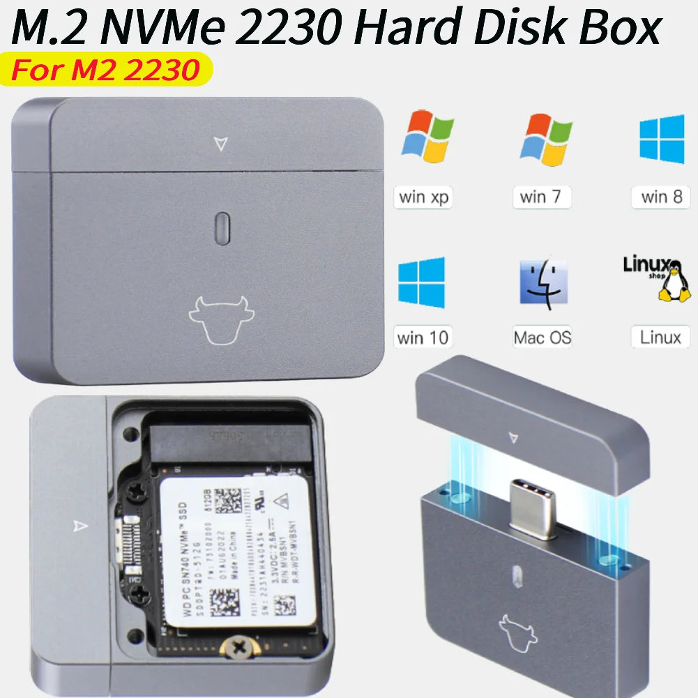 M.2 NVMe 2230 Hard Drive Box USB3.2 Gen2 External SDD Case Plug and Play Mobile Solid State Disk Case Aluminum Alloy for M2 2230