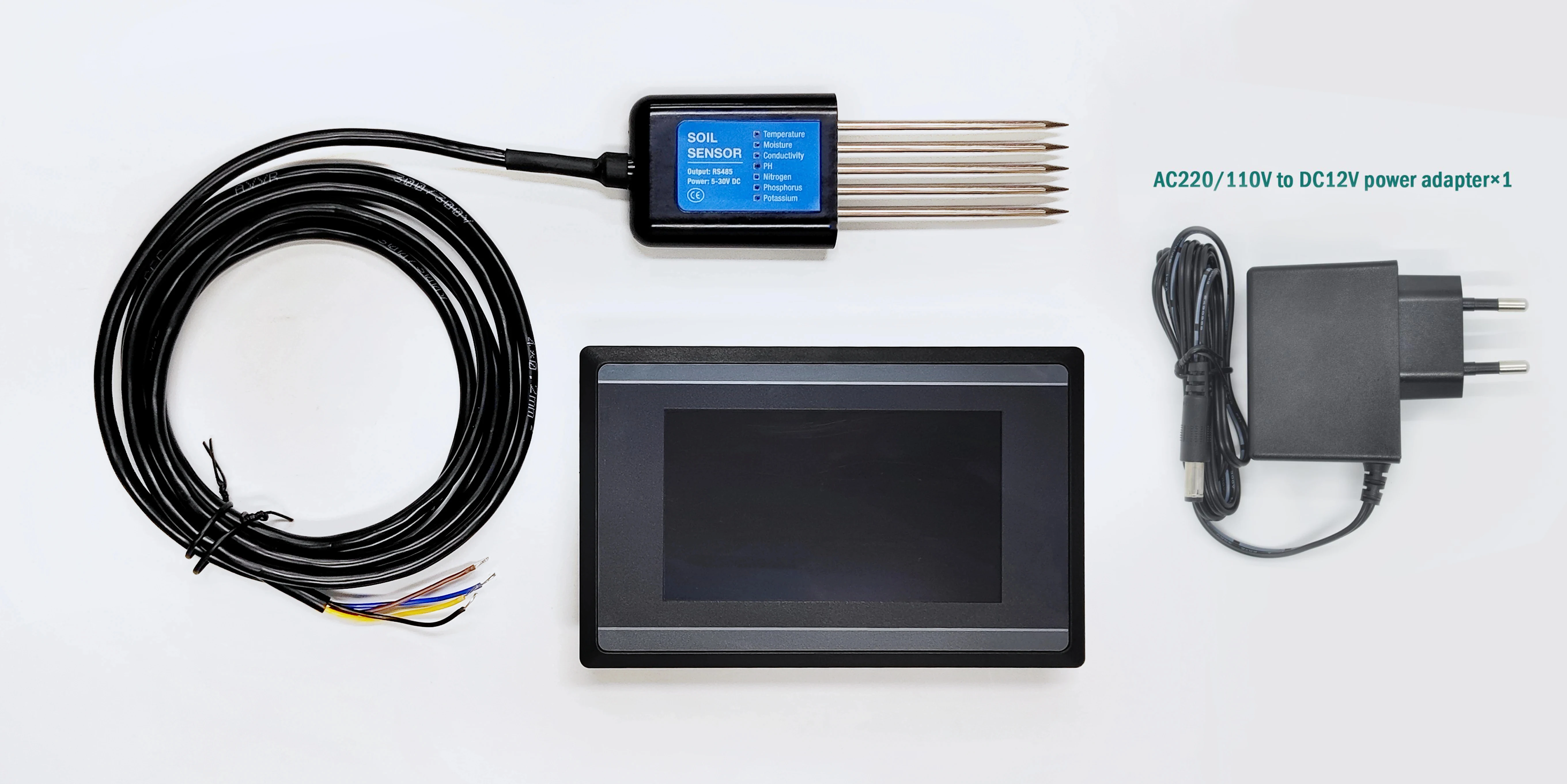 Measuring and Logging Soil Moisture Temperature Humidity EC PH NPK Sensor with HMI touch screen