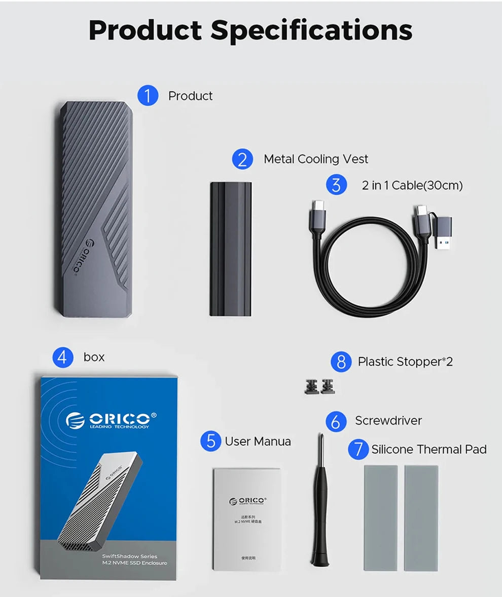 100% Original: ORICO 40Gbps USB4 M.2 NVMe Enclosure