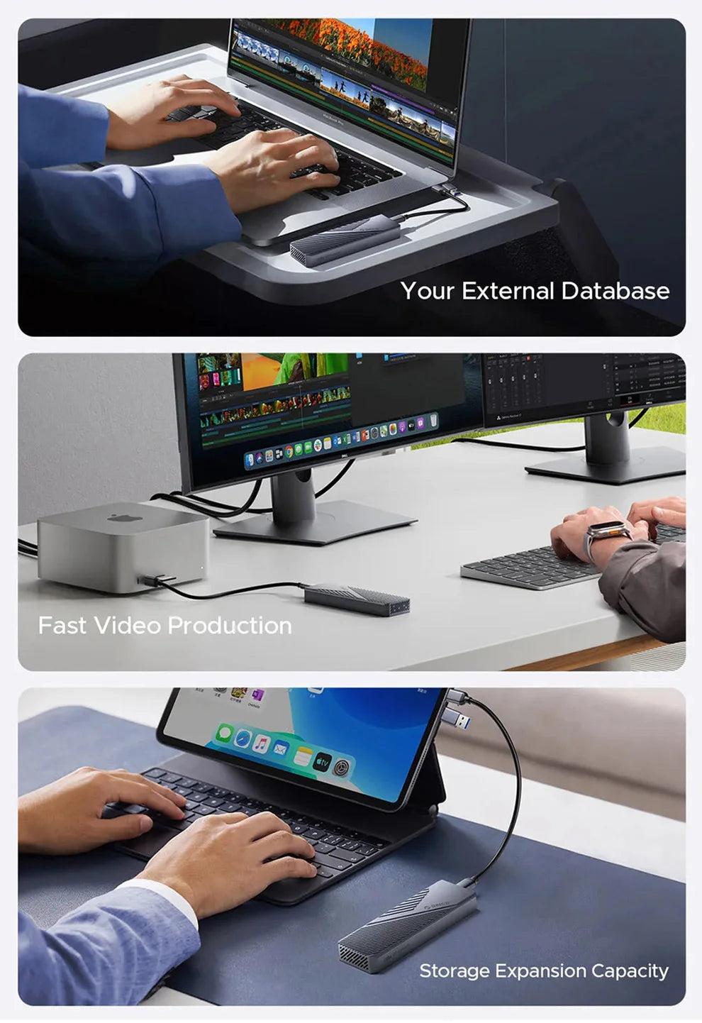USB4 Enclosures compatible with NVMe SSDs up to 8TB,Deal With Large Amounts Of Video, Images, Files, And Digital Data Quickly And With Ease.