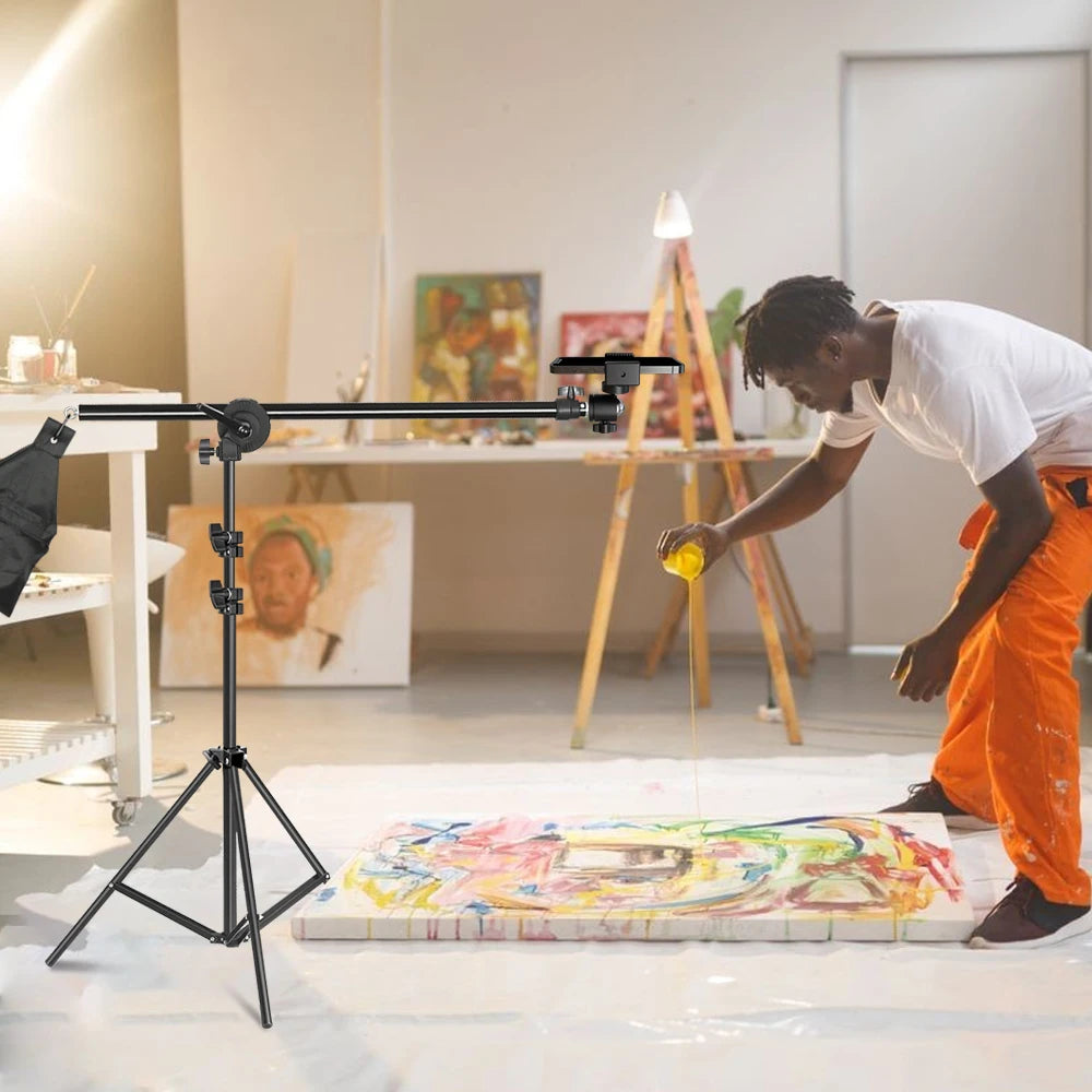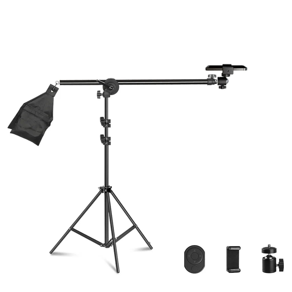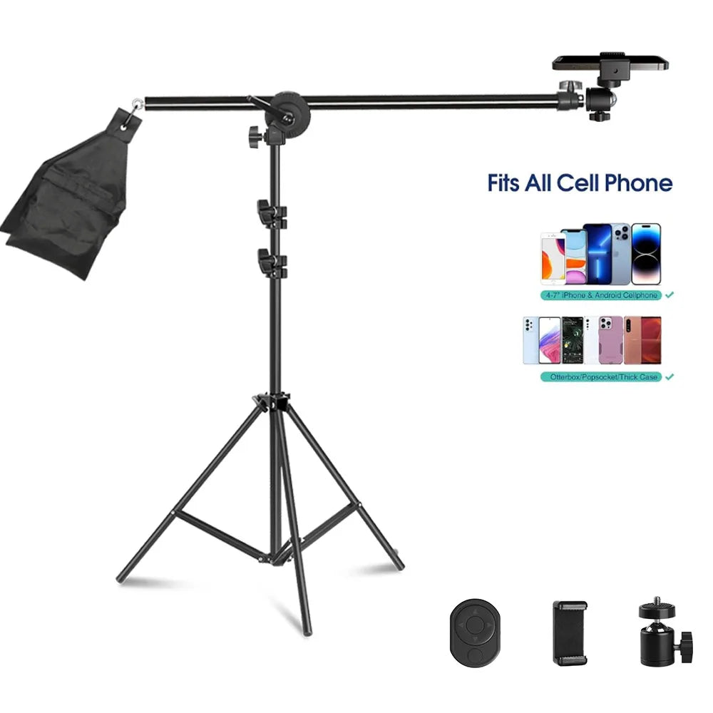 Phone Tripod C Stand for Photo Studio 2M with 1.4M Crossbar Boom Arm Sandbag Supporting Photography Phone Flash Video Record