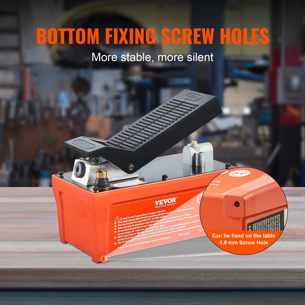 • Instant Activation for Effortless Power: Introducing the hassle-free foot-operated air/hydraulic pump, complete with hydraulic oil right out of the box. Say goodbye to tedious setup – simply step on the pedal for effortless pressure application and let it rebound for release. This user-centric design maximizes labor-saving convenience.