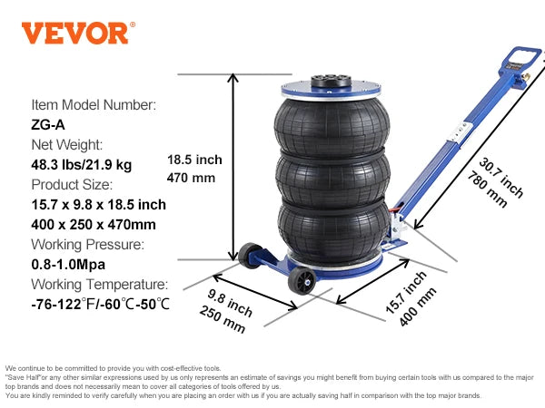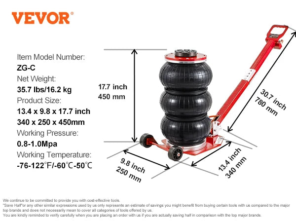 • 6600 lbs Load Capacity: With an impressive 3 Ton/6600 lbs high load capacity, our air bag jack is designed to support a wide range of household and commercial models. From family cars and pickups to micro cars and SUVs, this jack has got you covered.