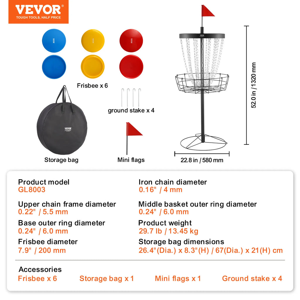 Outdoor Practice Essential: This disc golf basket is constructed with a steel frame and galvanized chains, fearless of wind and rain, allowing you to enjoy frisbee golf anytime, anywhere! Recommendation: Avoid leaving outdoors for an extended period. After use, disassemble the product, clean it, wipe it dry, and store it to ensure its longevity.