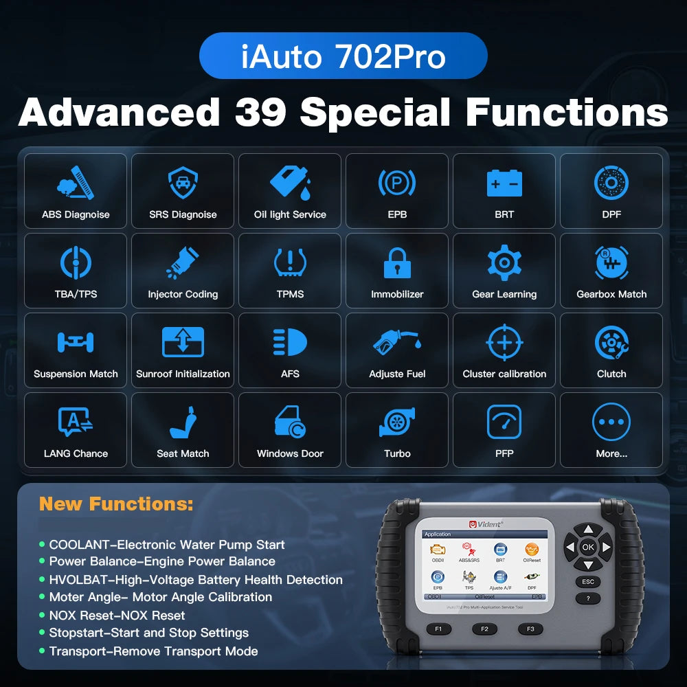 VIDENT iAuto702 Pro Reset 2: DPF, TBA/TPS, Injector Coding, TPMS, SAS