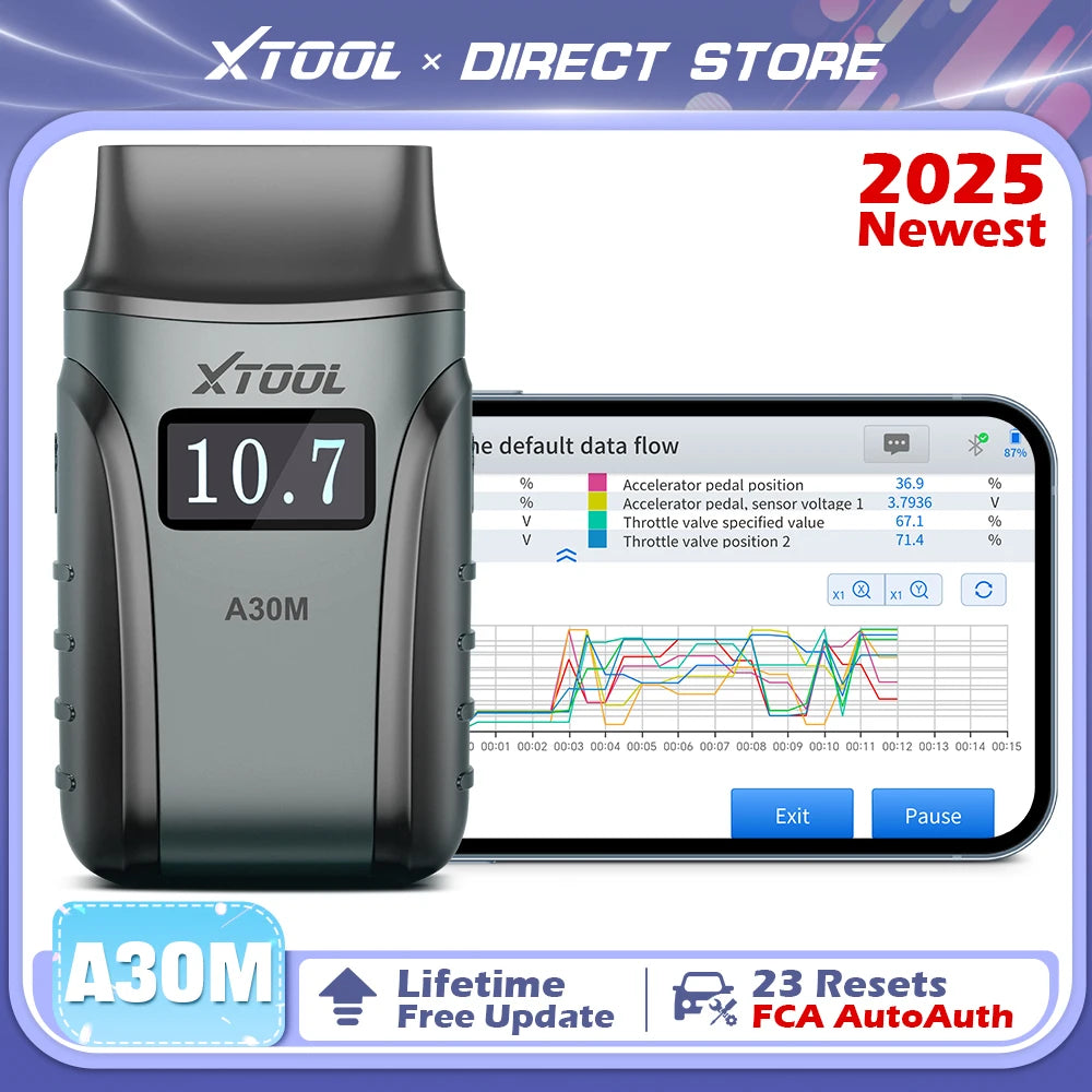 The upgraded version of XTOOL A30, A30D OBD2 Scanner, XTOOL A30M OBD2 Scanner always keep latest version. XTOOL Anyscan A30M obd2 diagnostic tool comes with ✔️Lifetime free updates, ✔️All-system diagnostics for both iPhone and Android, ✔️Newly FCA Autoauth, ✔️bi-directional control & active tests, ✔️23 key reset services, ✔️CAN FD protocol, ✔️full OBD2 functions. ✔️ 8-in-1 live data graphing, ✔️15 languages supported, ✔️extensive vehicle compatibility, it ensures efficient and versatile vehicle diagnostics.