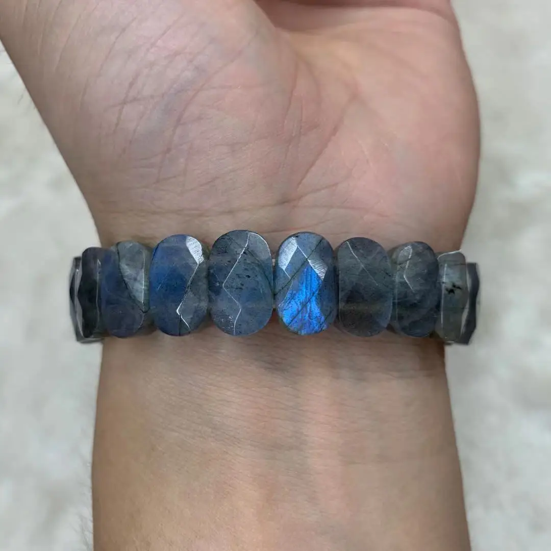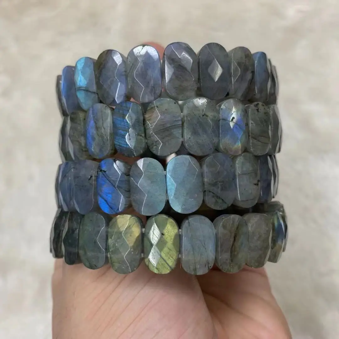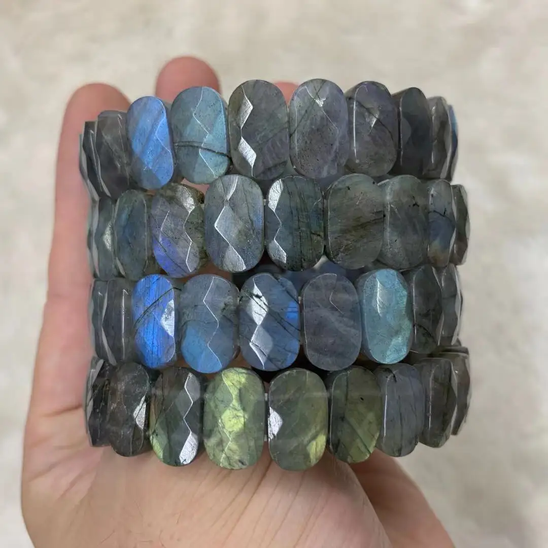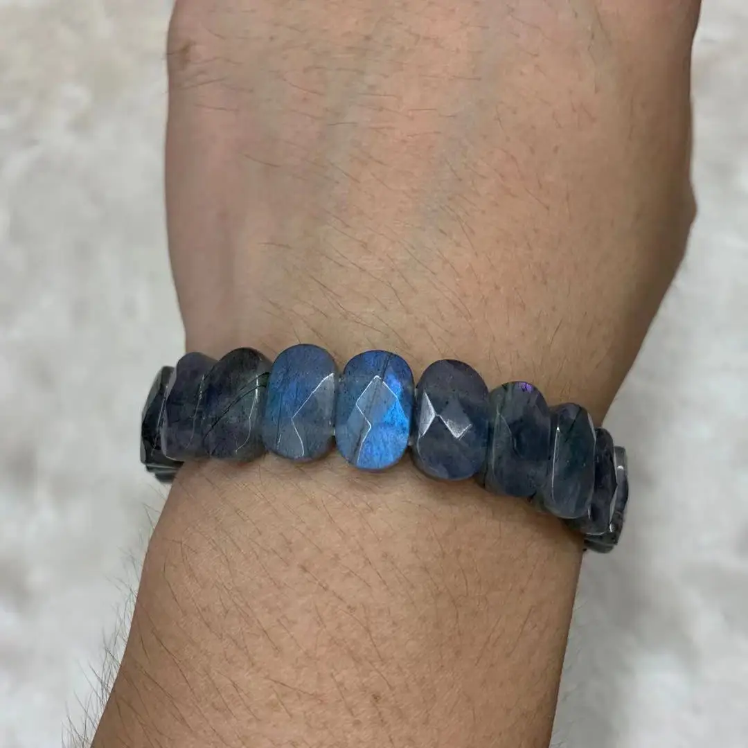 A+++ blue rainbow labradorite stone beads bracelet natural stone bangle with cat's eye for women men bracelet