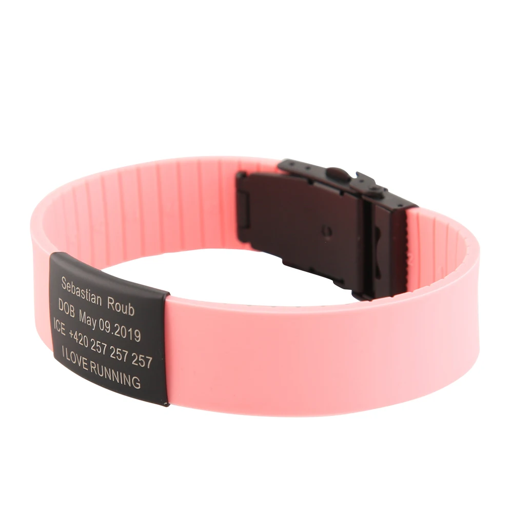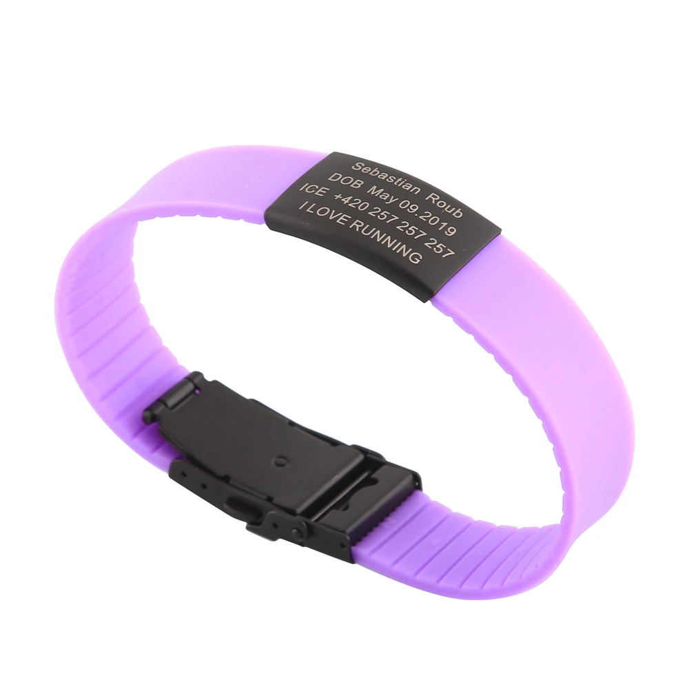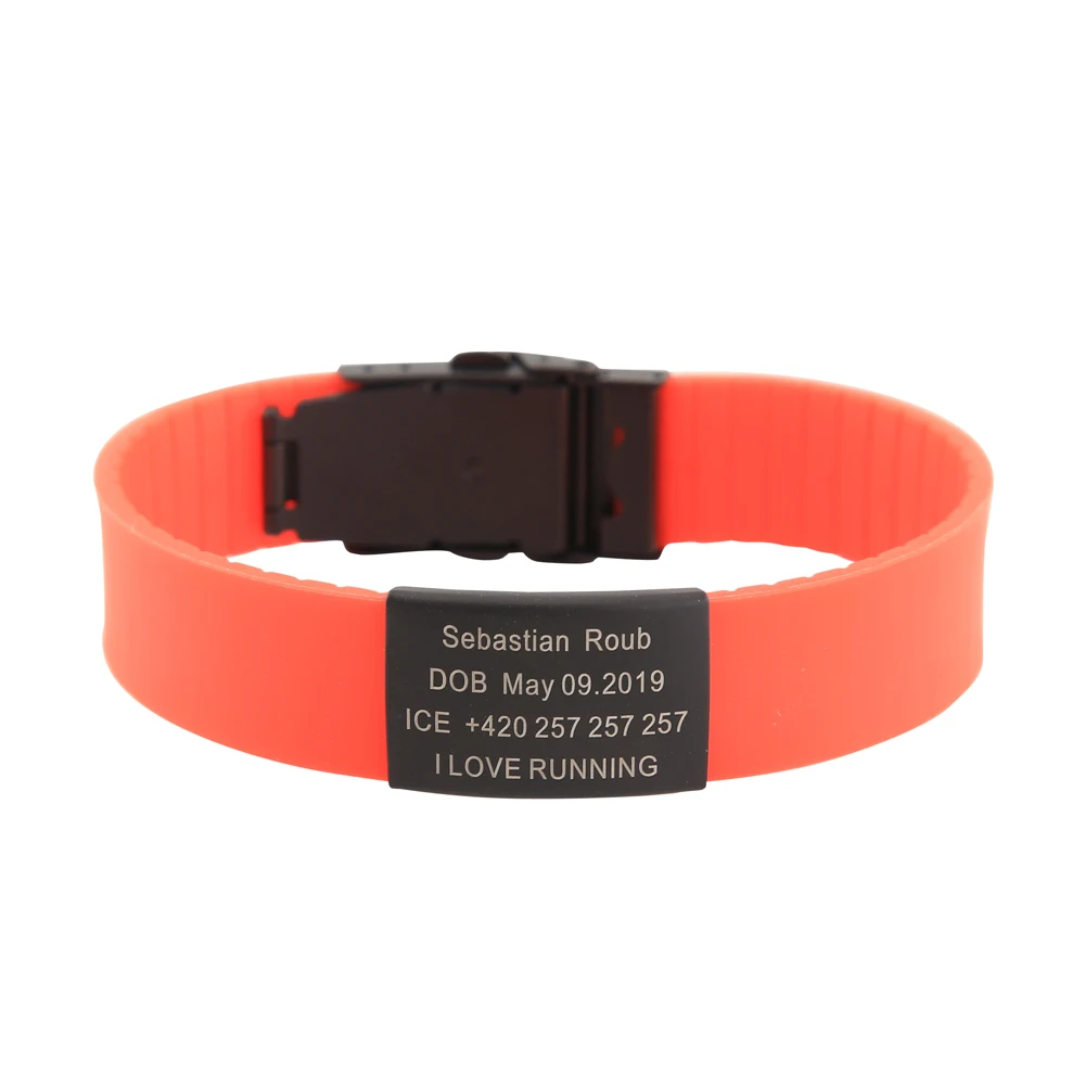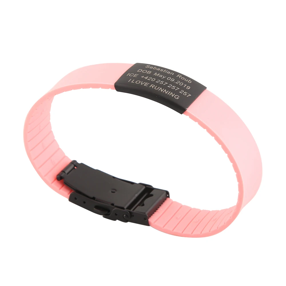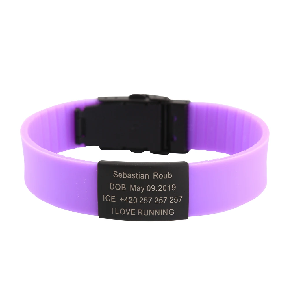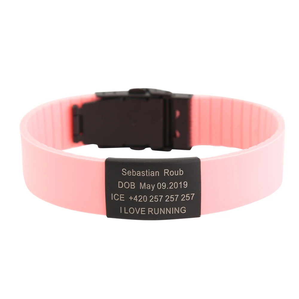 Child Kids SOS ID Safety Wristband Personalized Black Bracelet Baby Child Anti Lost Wrist Band Custom Engraved Silicone Armband
