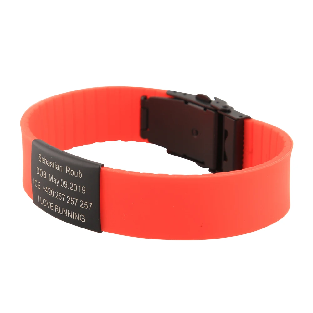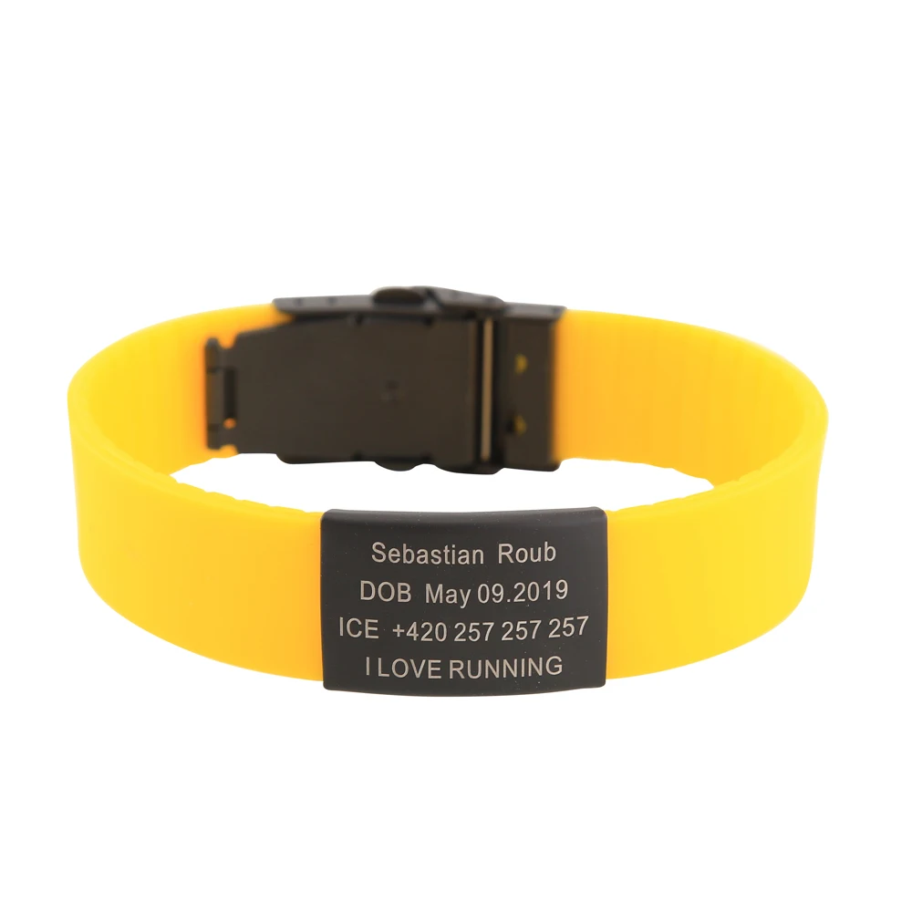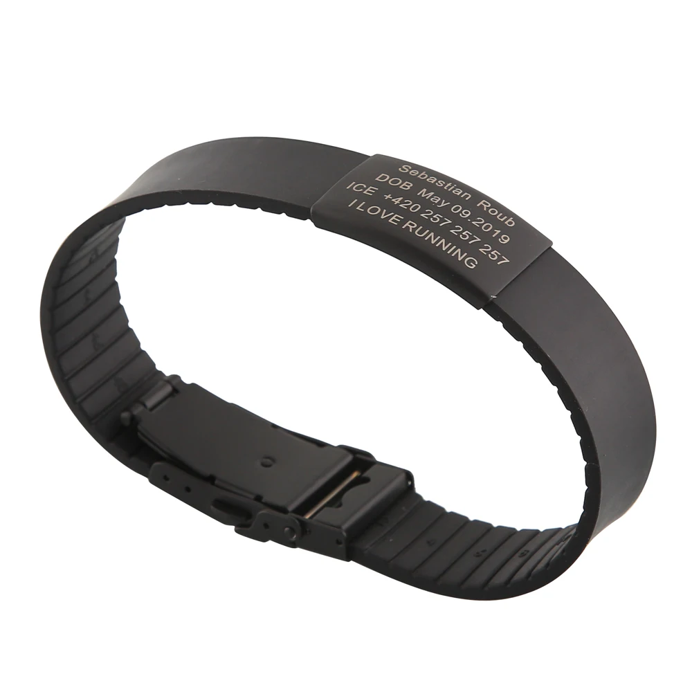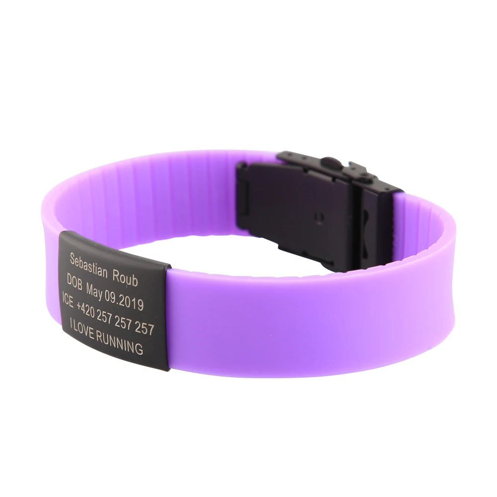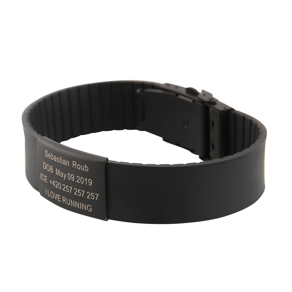 Child Kids SOS ID Safety Wristband Personalized Black Bracelet Baby Child Anti Lost Wrist Band Custom Engraved Silicone Armband