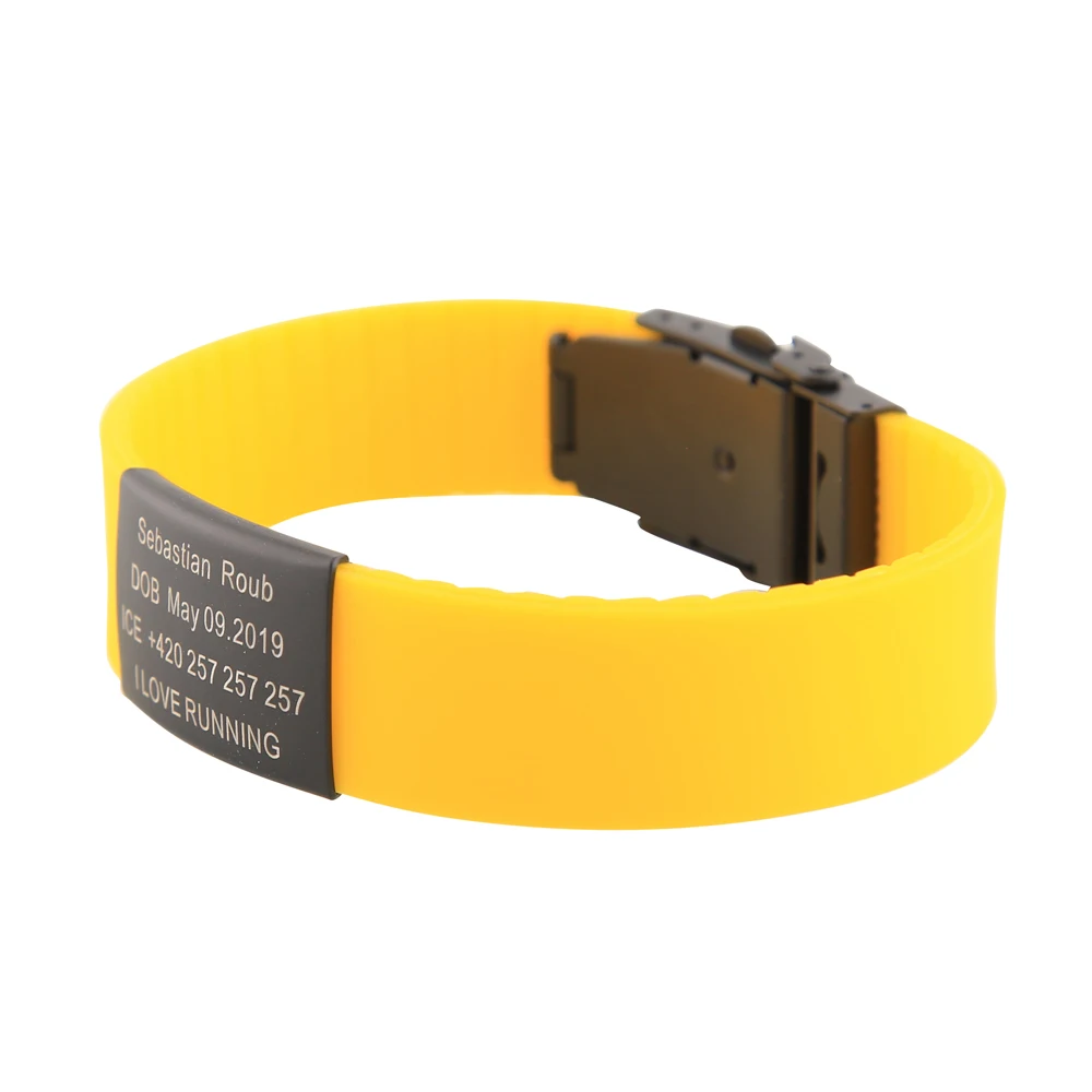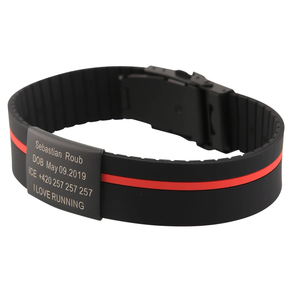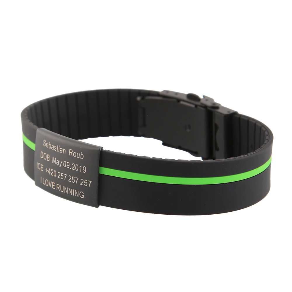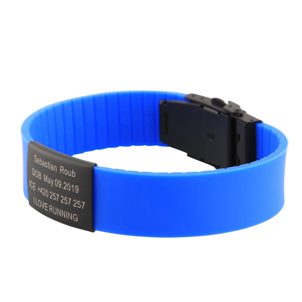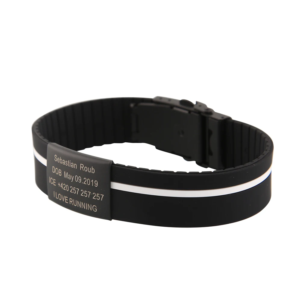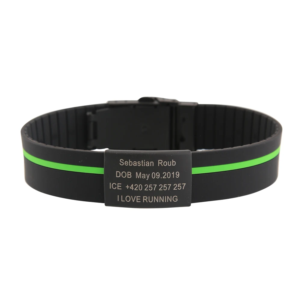 Child Kids SOS ID Safety Wristband Personalized Black Bracelet Baby Child Anti Lost Wrist Band Custom Engraved Silicone Armband