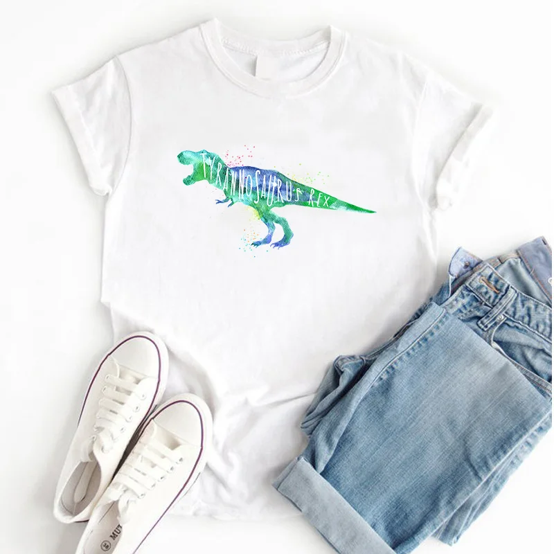 Dinosaur t shirts Women Funny Cartoon Print T-shirt TYRAN NO SAUR US REX Spoof Personality t shirt Design New Summer Casual Tops