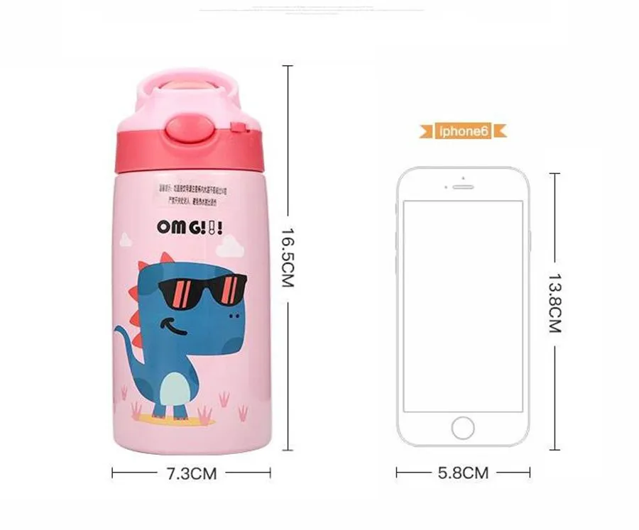 Hot Sales  Cute Children Powdered Milk Kettle Cartoon Stainless Steel 316 Straw Thermos Flasks Baby's Stuff Vacuum Water Bottle