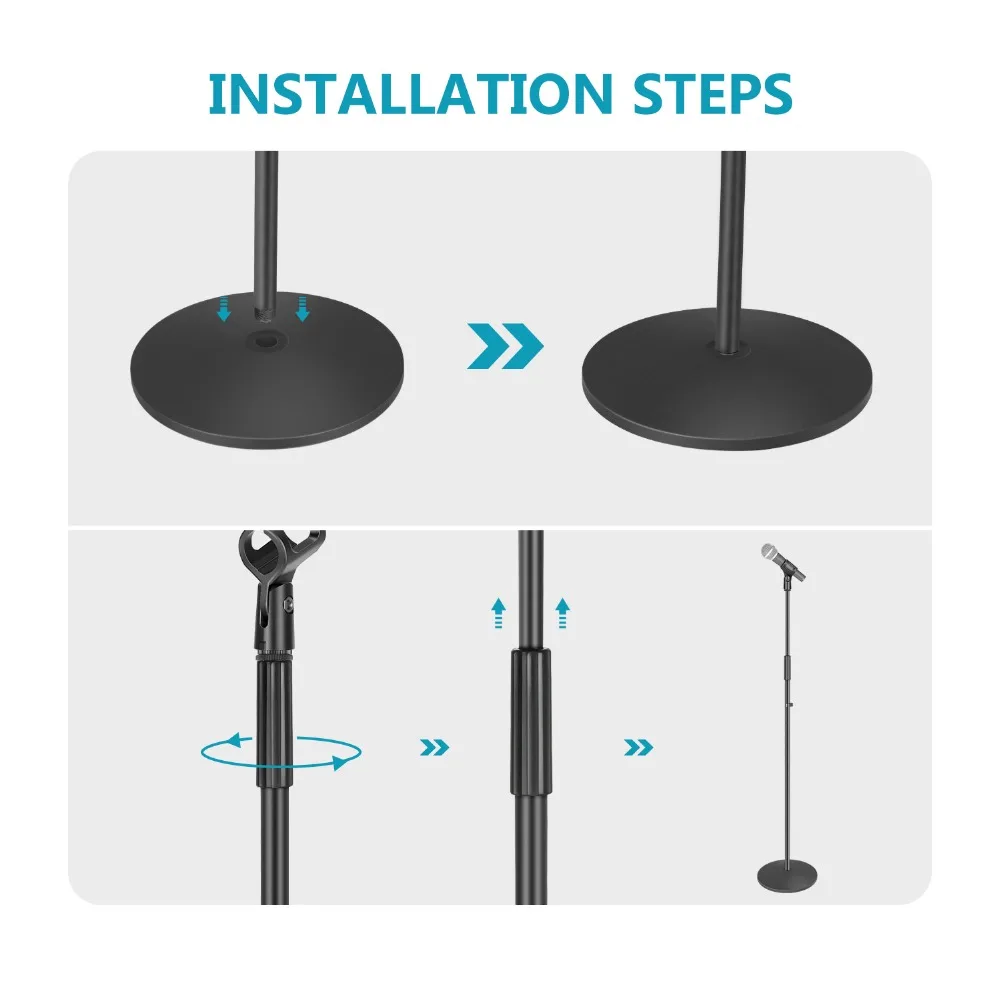 Neewer Compact Base Microphone Floor Stand with Mic Holder Adjustable Height from 39.9 to 70 inches Durable Iron-made Stand with Solid Round Base Detachable for Easy Transport(Black)
