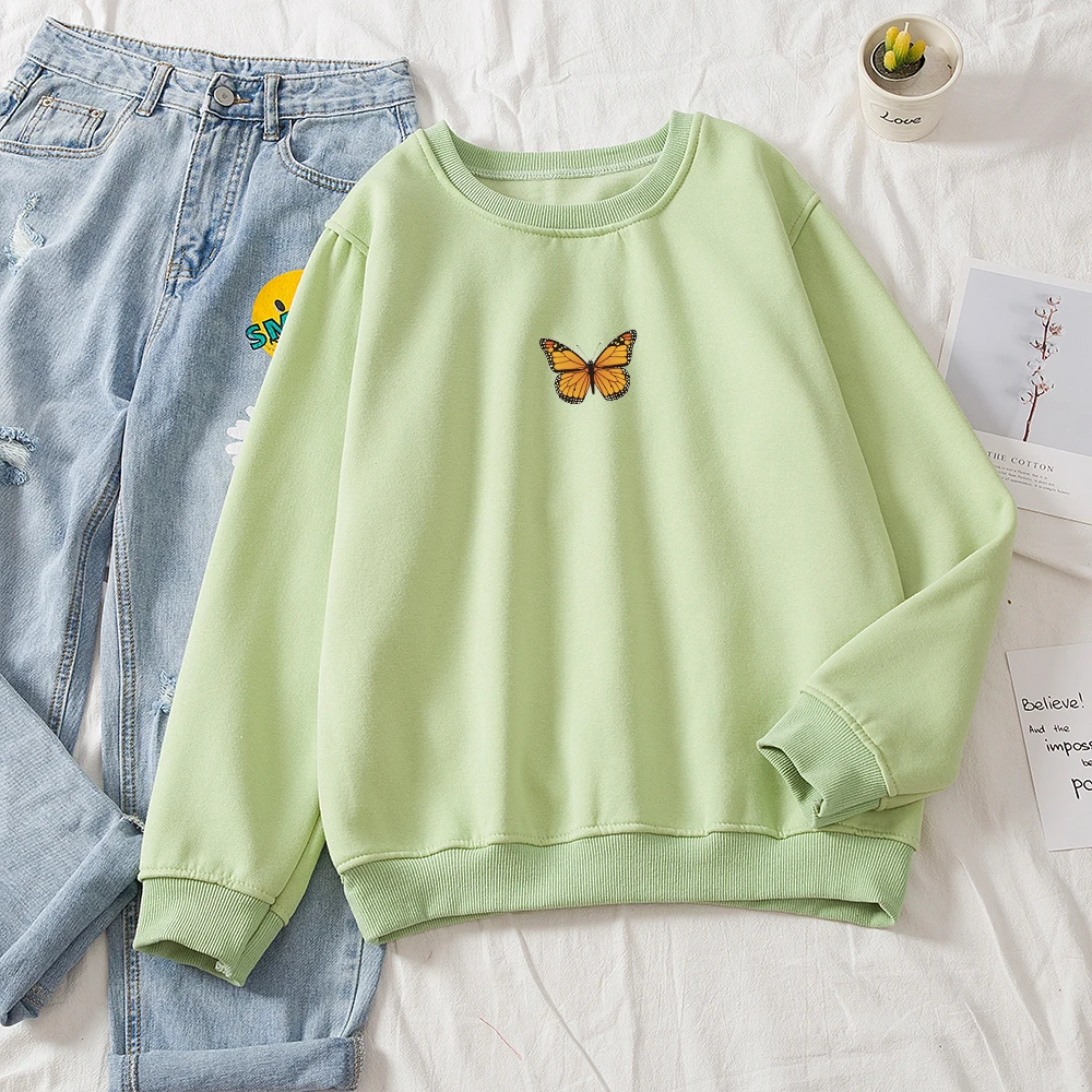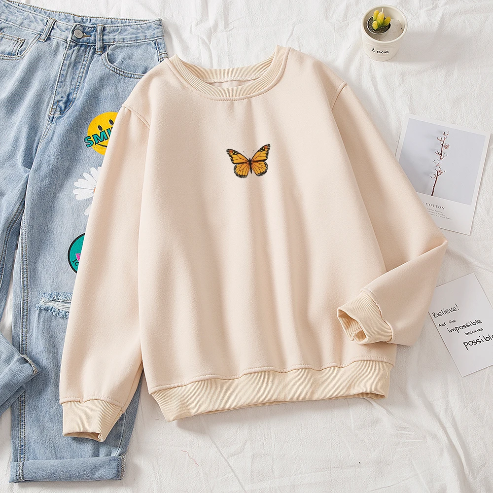 Winter Literary Retro Cotton Sweatshirts Women Plus Size Harajuku Fashion Hoodies O Neck Butterfly Hoodie Long Sleeve Streetwear