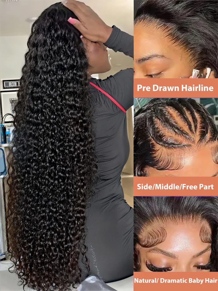 200 high Density Curly 13x6 HD Lace Frontal Human Hair Wigs Brazilian 30 40 Inch Water Deep Wave 13x7 Lace Front Wig For Women