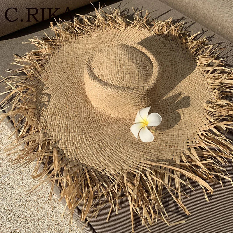 2022 Natural Raffia Straw Hat Summer Hat Women Large Wide Brim Sun Protection Sun Hats Lady Gilrs Holiday Panama Beach Hat