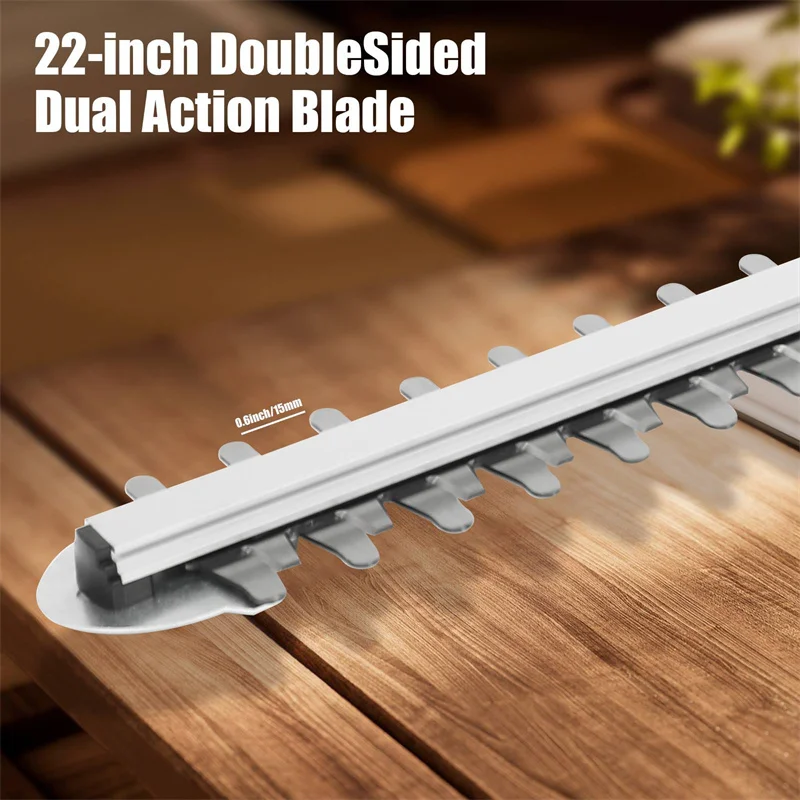 [Excellent cutting ability] This wireless hedge machine comes with a battery and charger, and is equipped with a hardened steel laser cutting blade for fast cutting and smooth cutting. The 22-inch electric blade hedge machine is equipped with a powerful motor with a no-load speed of up to 1500rpm to quickly take care of large areas. The battery-powered hedge machine greatly improves the overall work efficiency.