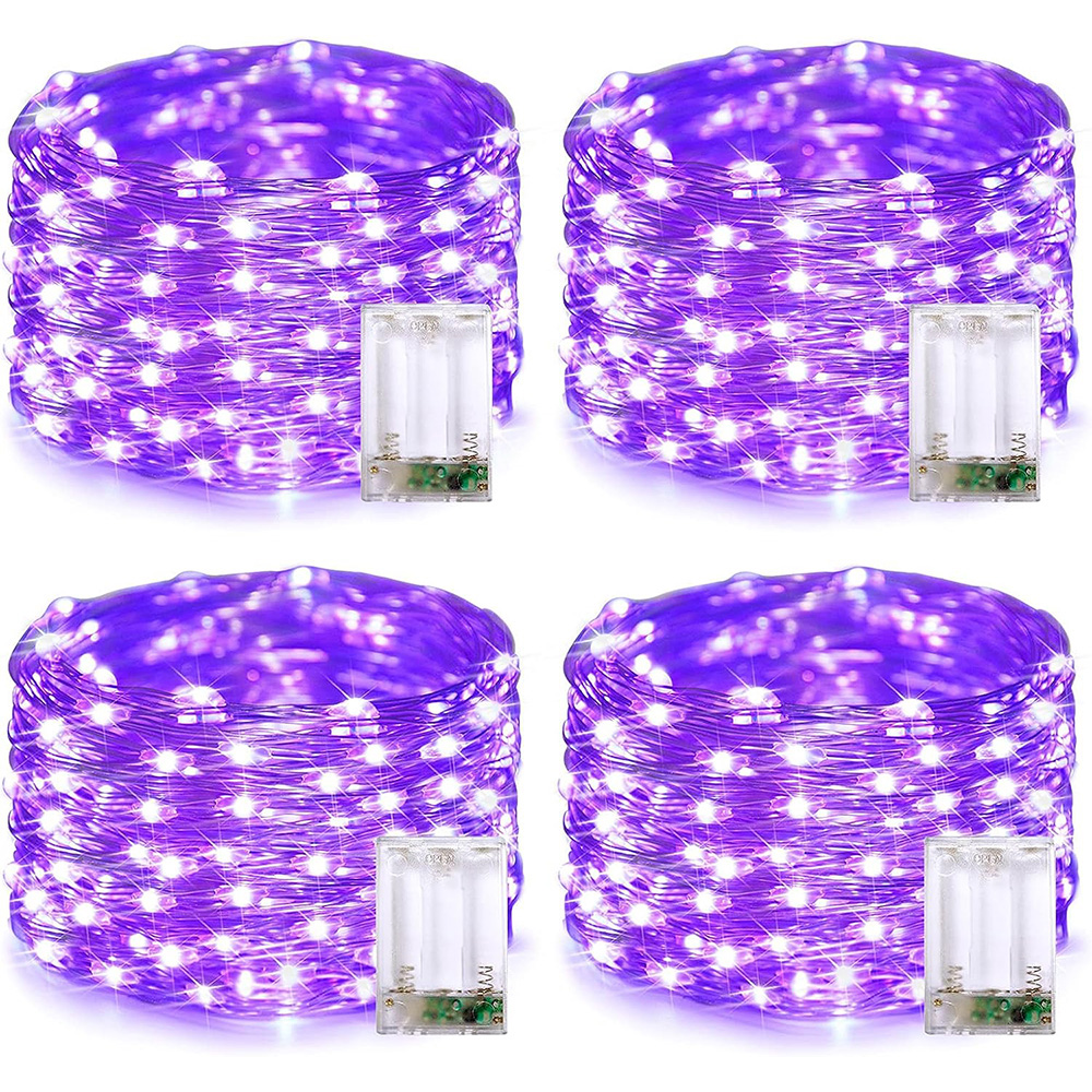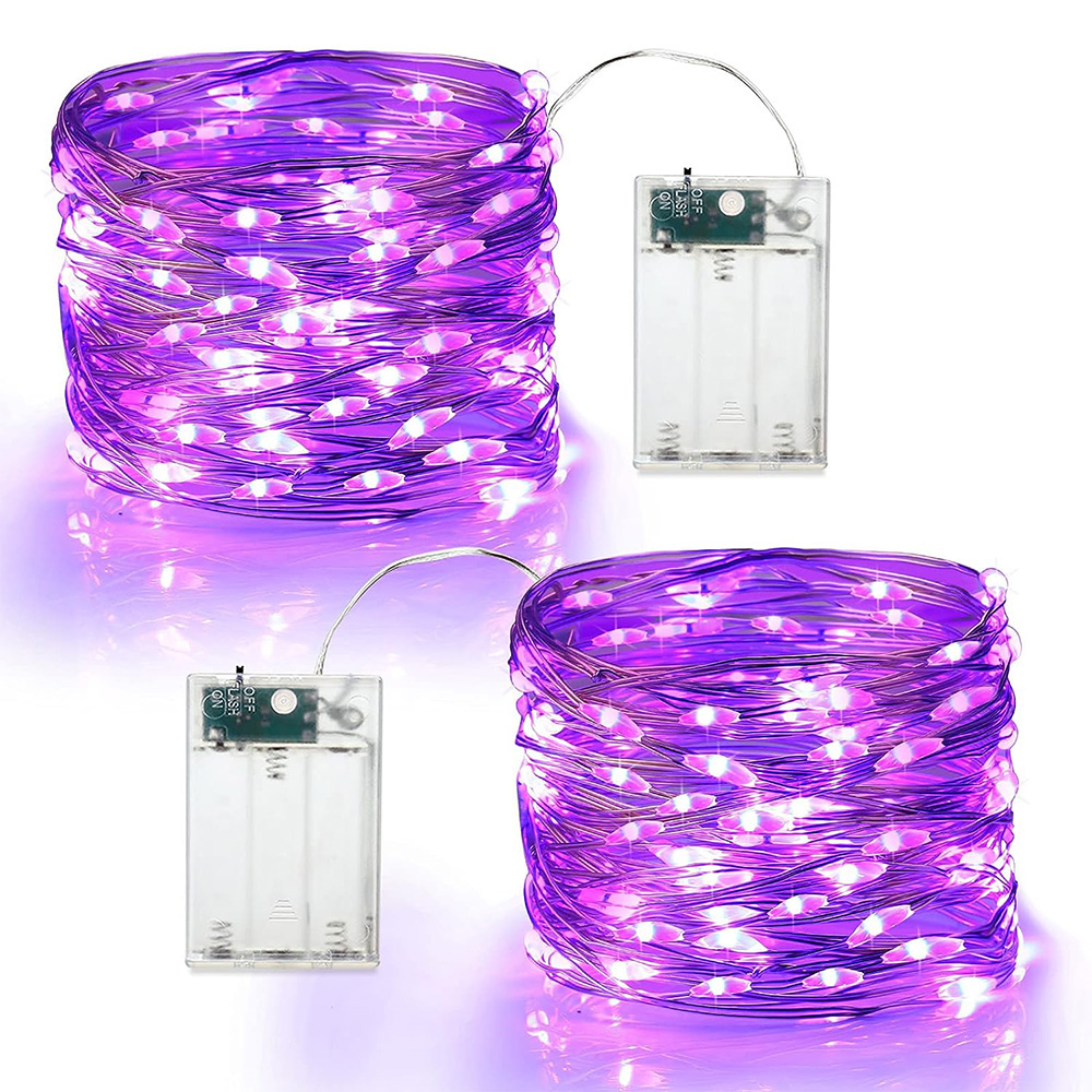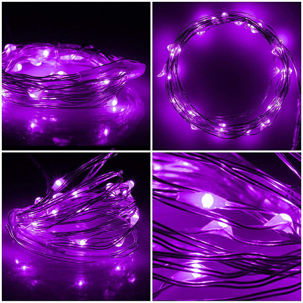 LED Copper Wire String Lights Purple Halloween Lights Battery Operated Purple Fairy Lights LED String Lights for Christmas Wedding Party Home Holiday Decoration