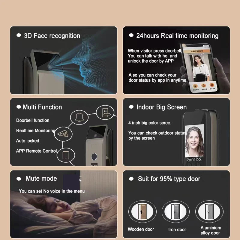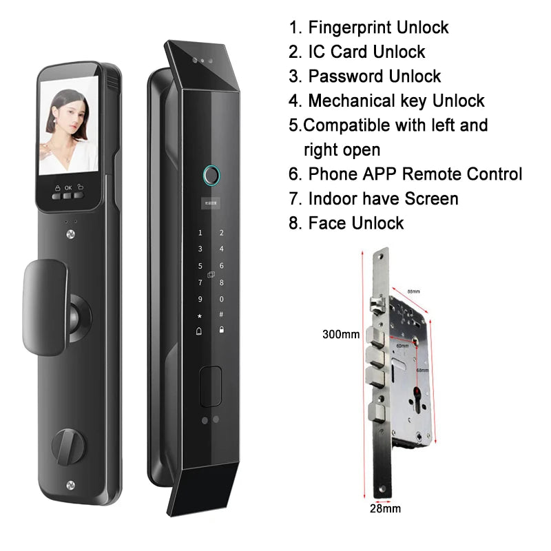Ways To Unlock: Face Recognition,App,Mechanical Keys,Card,WiFi,Password,FINGERPRINT