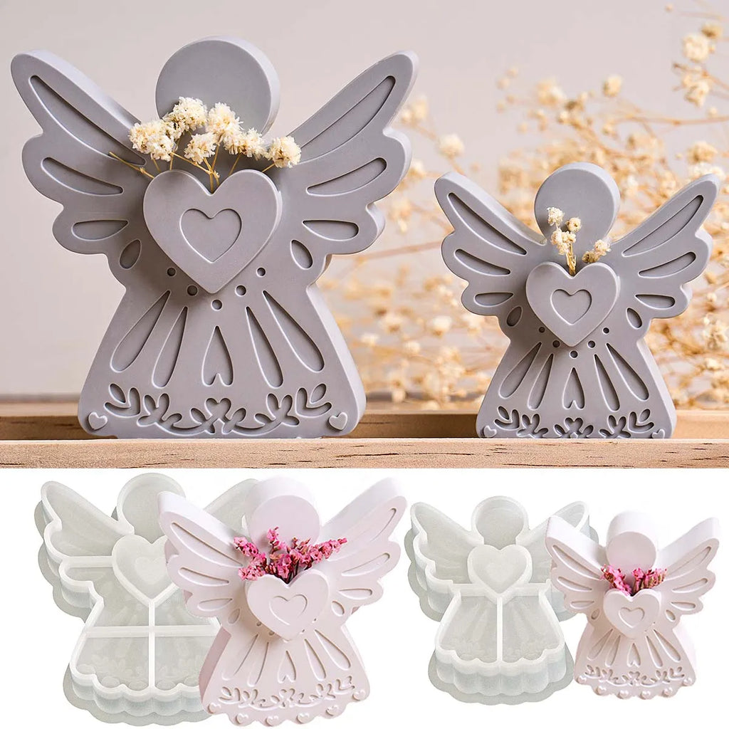 3D Love Angel Flower Arrangement Silicone Mold DIY Valentine's Day Wedding Party Decor Making Molds Plaster Resin Candle Crafts