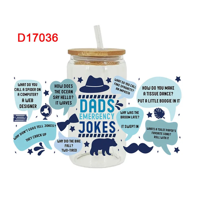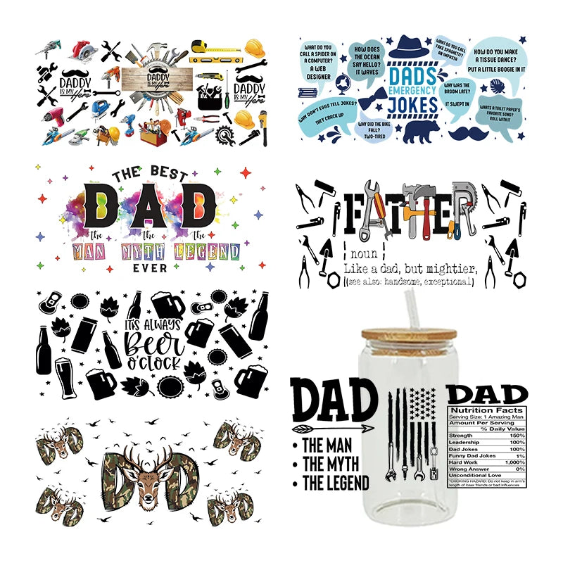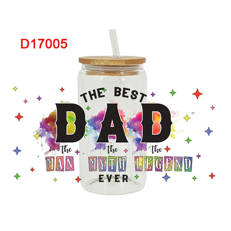 3D UV DTF Transfers Stickers 16oz Cup Wraps Dad Father's Day Printed For DIY Glass Ceramic Metal Leather Etc. D16893