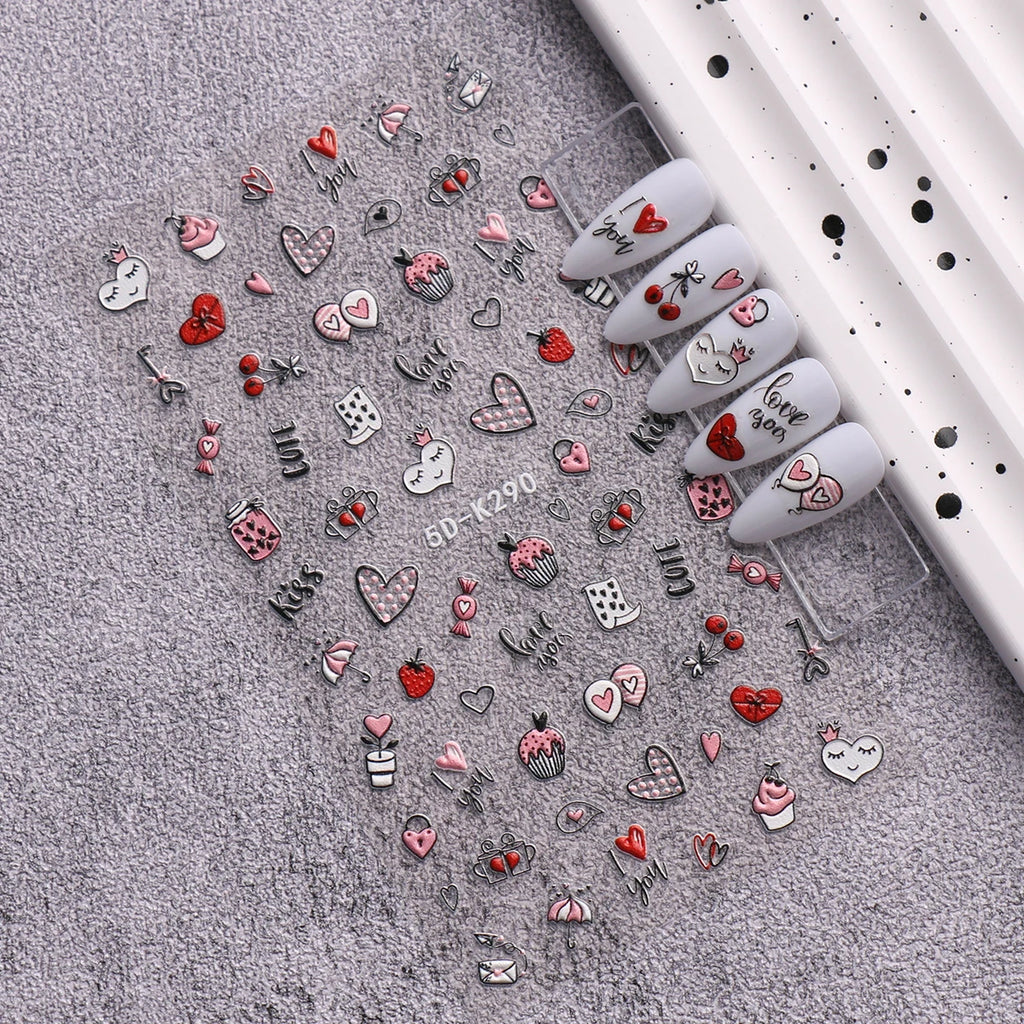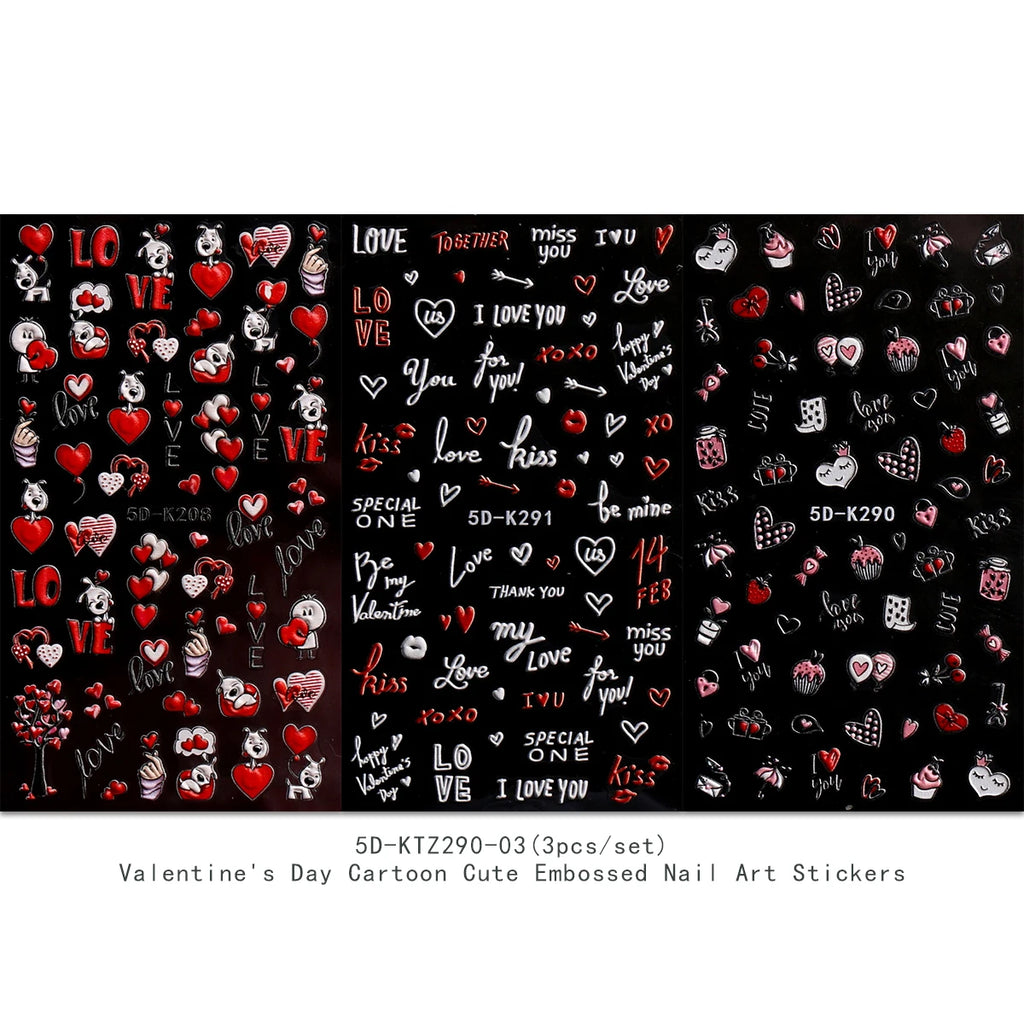 3pcs Valentine's Day embossed nail art stickers, easy application for nail decoration, DIY, gift, party makeup styling, Y2K