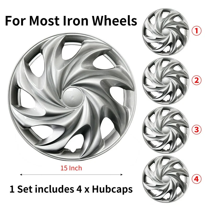 4 PCS Wheel Covers Hubcaps Design For 15 Inch Steel Wheels R15 Tire For Most Family Cars