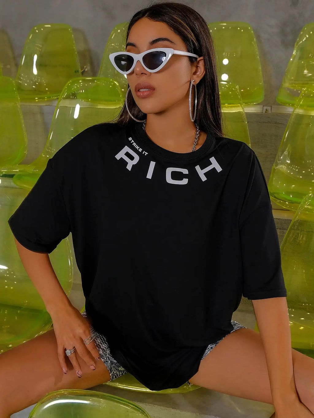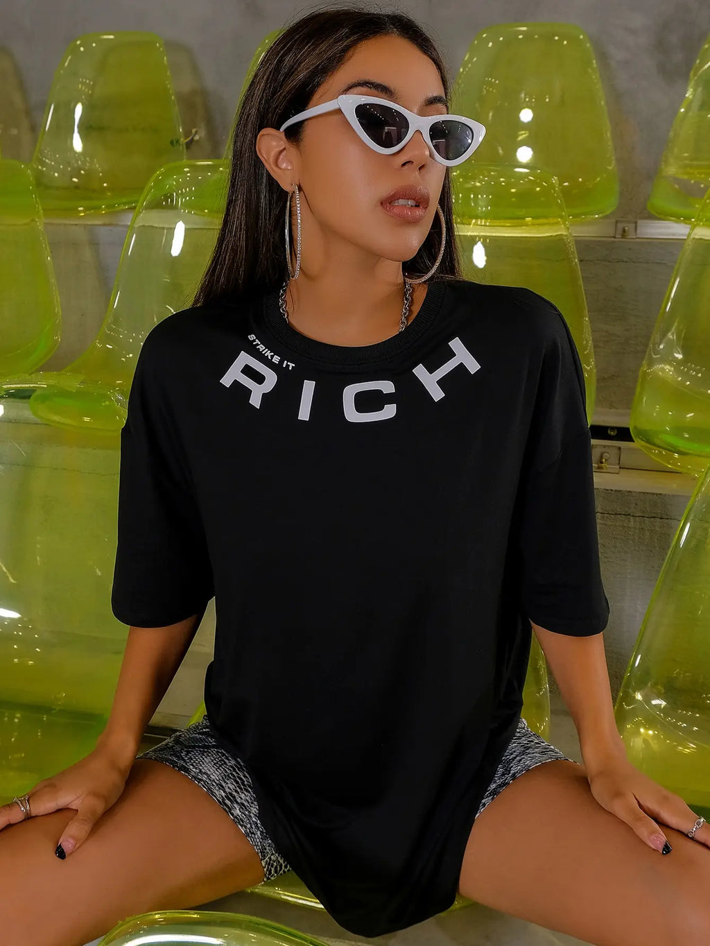 American Personality Letter Print T-Shirts Female Summer Cotton Clothing Loose Fashion Short Sleeve O-Neck Hip Hop Tee Shirts